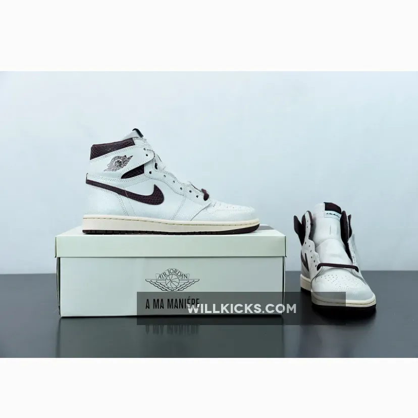 Michael Jordan’s Air Jordan 1 basketball kicks are still as famous today as they were in 1985, except they’re now widely popular on the streets and not only on the court. There are hundreds of AJ1 colourways on the market, but only a few are noteworthy. Case in point: the A Ma Maniére x Air Jordan 1 High. If you’re a die-hard Jordan fan, we have no doubts that these are on your must-cop list.For this collaboration, James Whitner’s Air Jordan 1 High sees another super clean setup, just like the A Ma Maniére x Air Jordan 3 that remains highly coveted today.From heel to toe, the panels indulge in a smooth suede setup in an off-white hue. The overlaying panels, notably the Swoosh logos on the lateral and medial sidewalls and the collars, see a burgundy leather material with a croc/snakeskin-like pattern for luxury vibes. Completing this high-top Air Jordan 1s are AMM branding details as well as an inspiration phrase concealed within the inner part of the ankle flaps that reads “You have to expect things of yourself before you can do them. Also, use our Air Jordan 1 size guide to know how they fit.