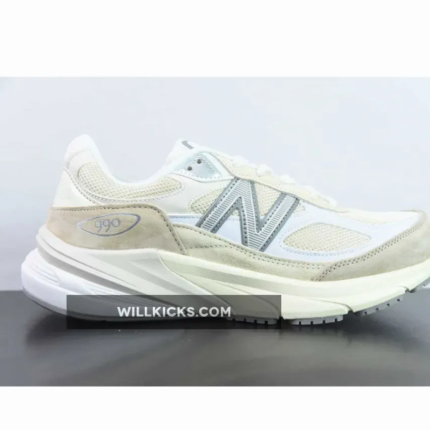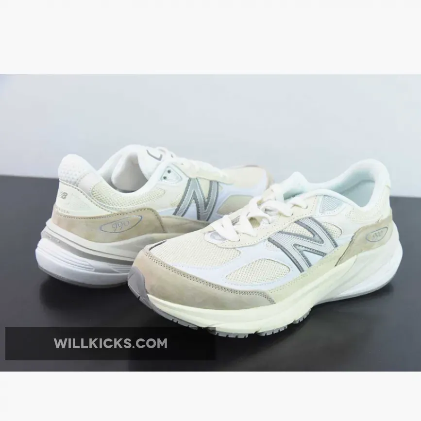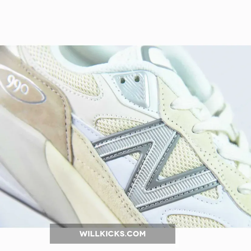 The New Balance 990v6 is the latest member of the 990x series, and it retains the DNA of its predecessors. This New Balance silhouette is crafted from a combination of high-quality materials. It features a Creamy-colored base with White detailing and Tan overlays up front and in the rear. Silver reflective “N” logos on the sides, 990 badge on the lateral side of the heel atop a FuelCell-cushioned midsole and rubber outsole completes the design.