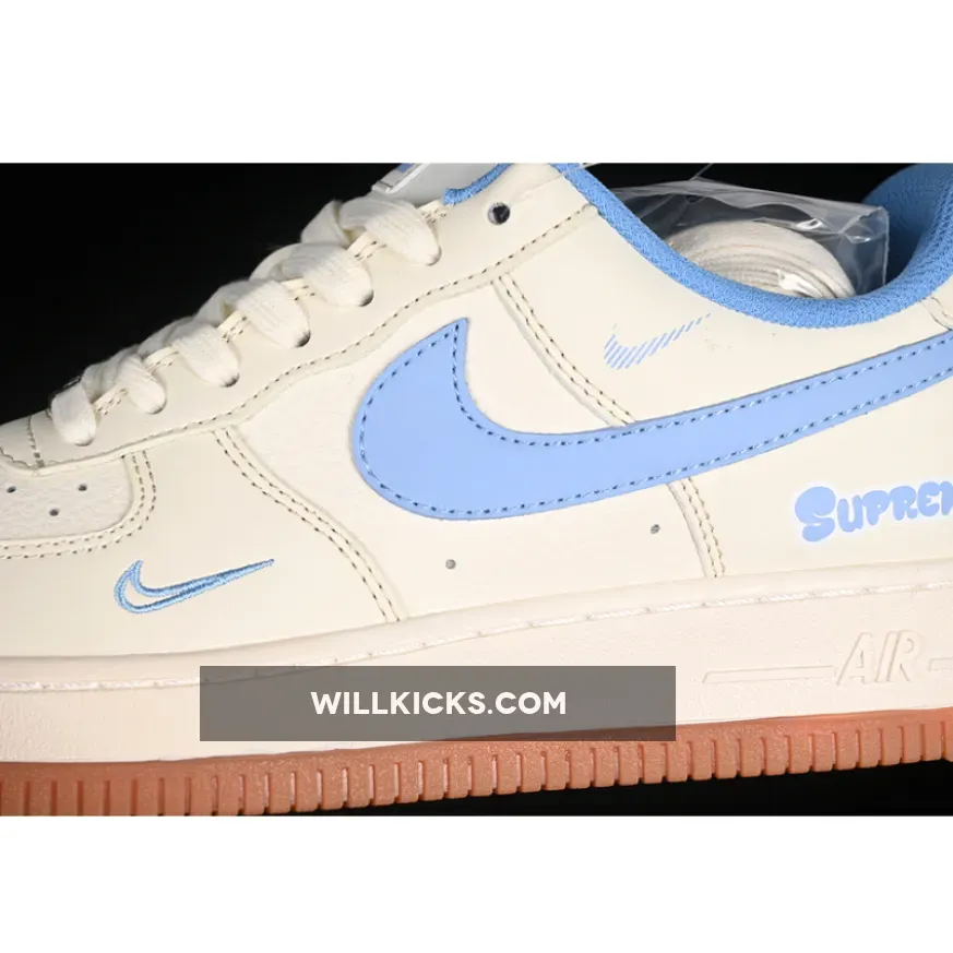 Upgrade your wardrobe with AIR FORCE 1 07 LOW SUPEME BLUE/WHITE/BROWN from WILLKICKS.COM.