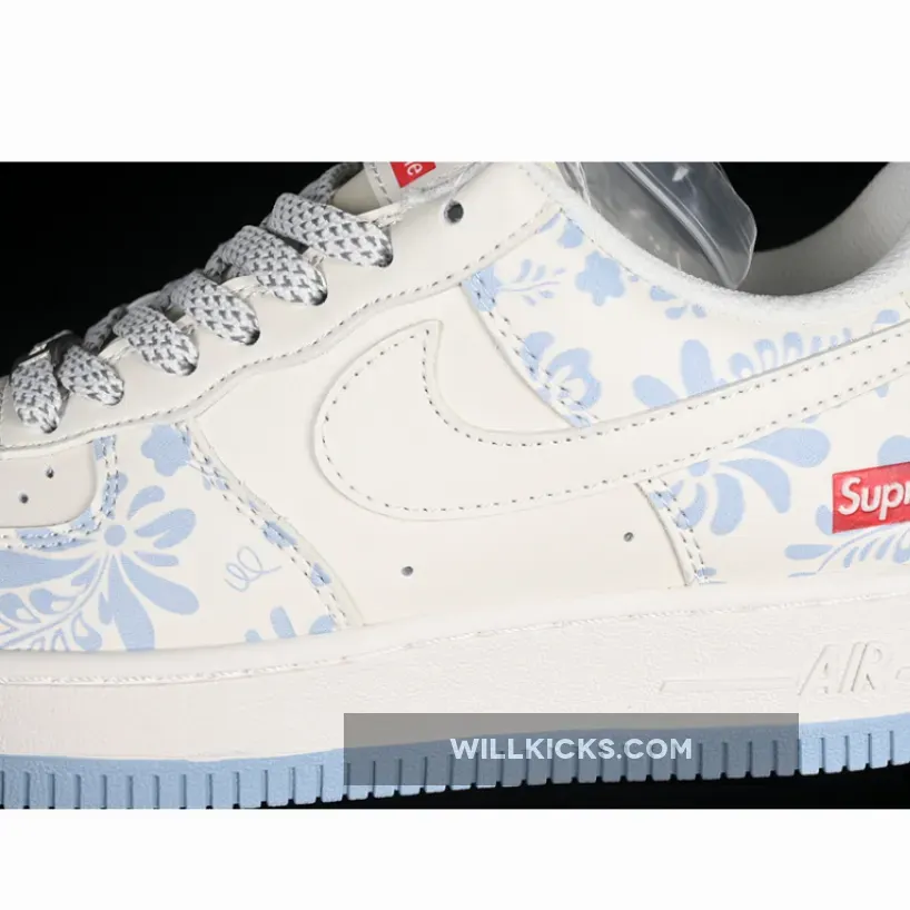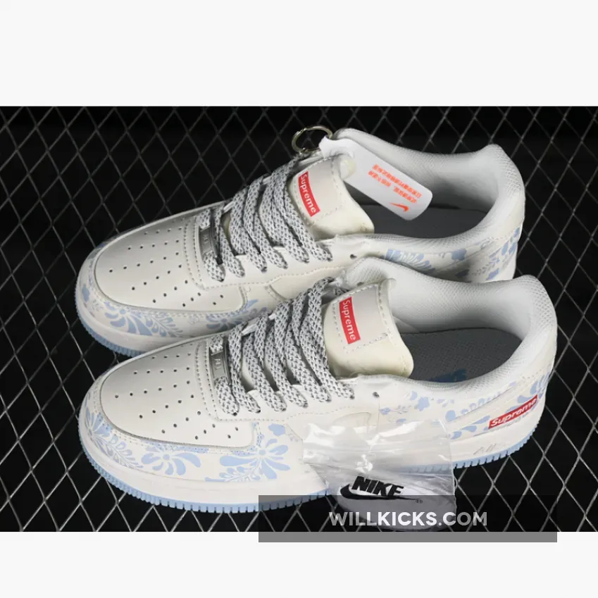 Now Buy AIR FORCE 1 07 LOW SUPREME WHITE/GREY/BLUE Save Up 50% From Outlet Store at WILLKICKS.COM.