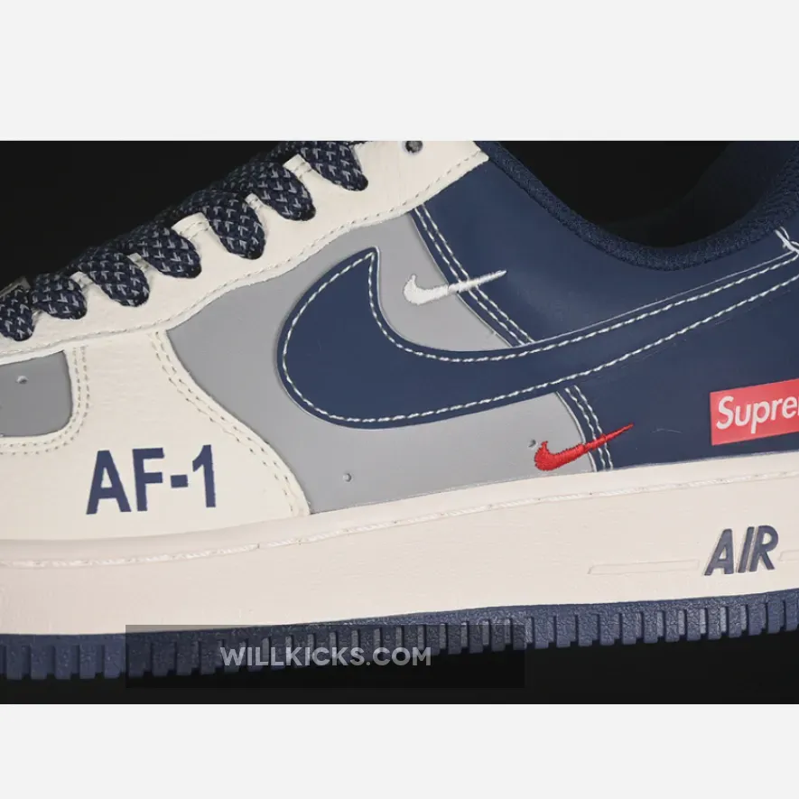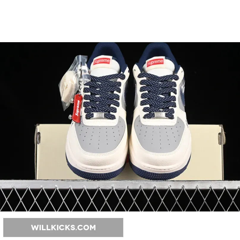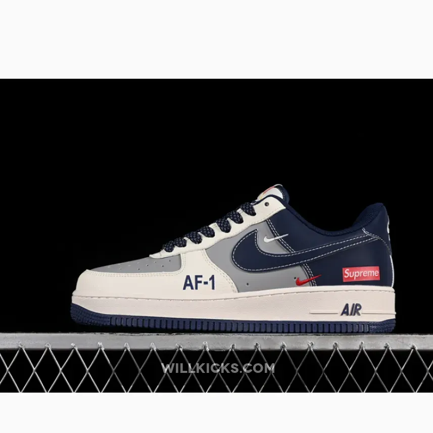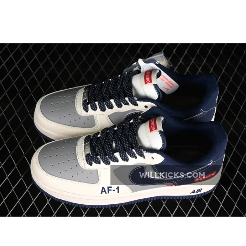 Experience the comfort of AIR FORCE 1 07 LOW SUPREME WHITE/GREY/BLUE from WILLKICKS.COM.