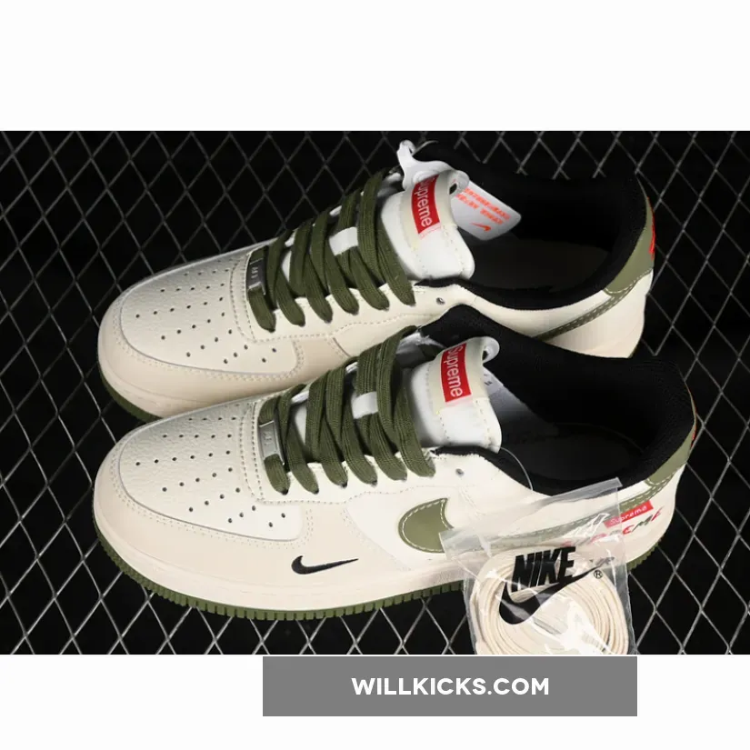 Find your perfect fit with AIR FORCE 1 07 LOW SUPREME WHITE/GREY/GREEN on WILLKICKS.COM.