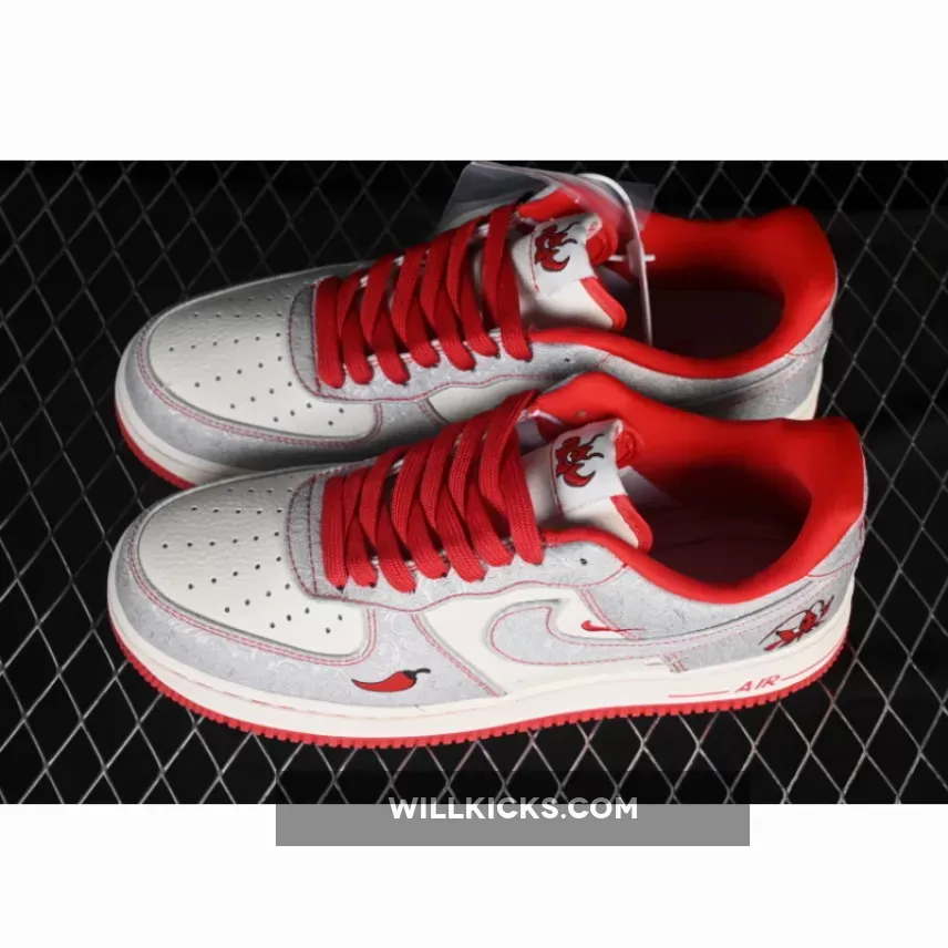 Unleash your style with AIR FORCE 1 07 LOW WHITE/GREY/RED from WILLKICKS.COM.