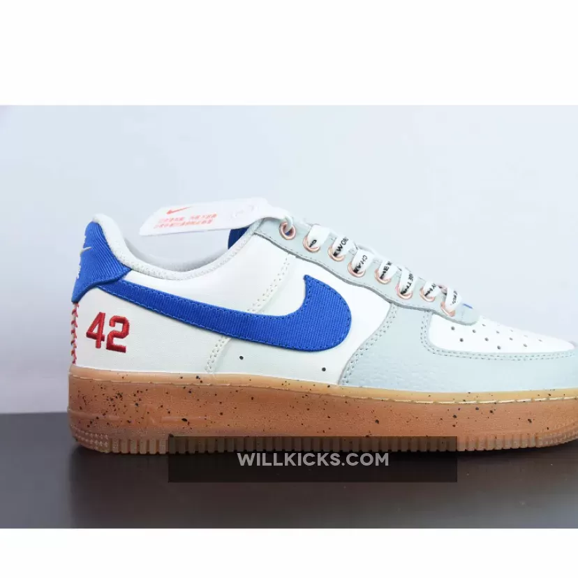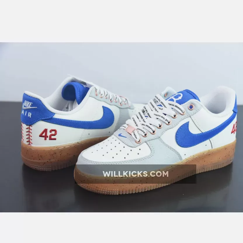 As a follow-up to that historic release, Nike will once again honor Jackie Robinson with the Air Force 1 Low, seen here for the first time via official images. The shoes feature a strong influence from the throwback Brooklyn Dodgers uniforms, with Jackie’s #42 embroidered on the heel and the team logo on the tongue. “Change The World” is printed on the laces, while the metallic bronze lace dubrae commemorates the year Jackie broke the color barrier (1947) and the year he retired (1956).