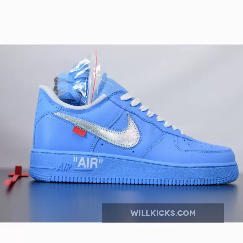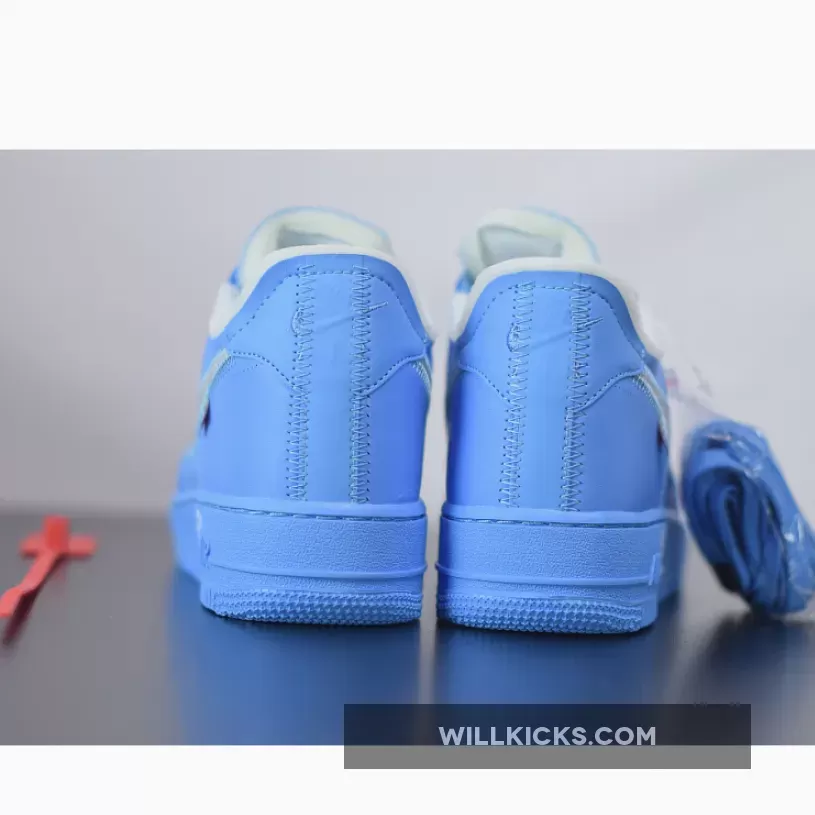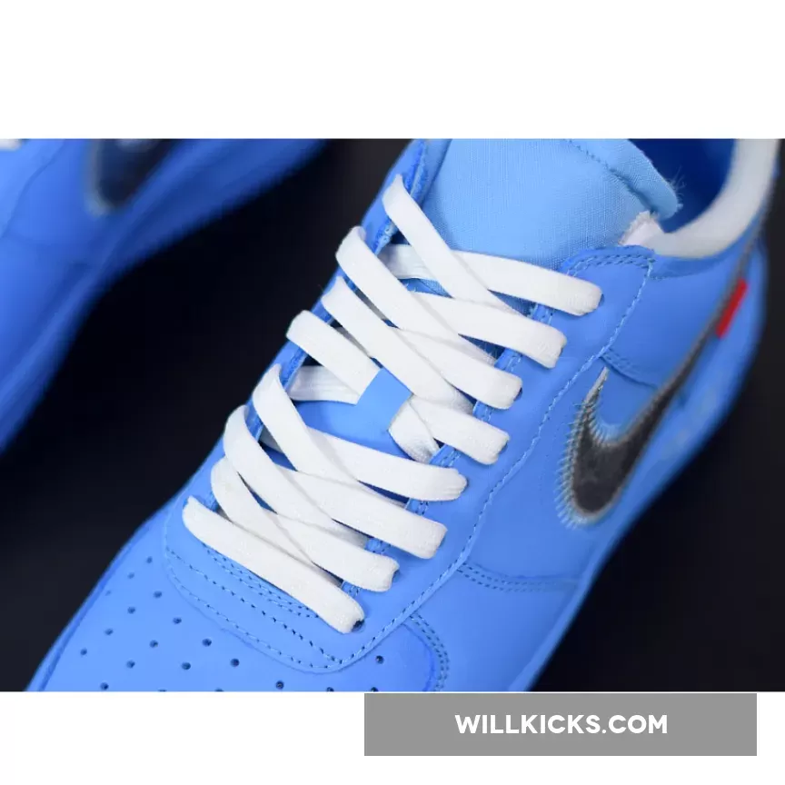 The tried-and-true design language associated with Abloh’s ventures with the Swoosh brand return in clear form. University Blue provides the main color inspiration for the sneaker, swathing from the midsole to the leather upper.