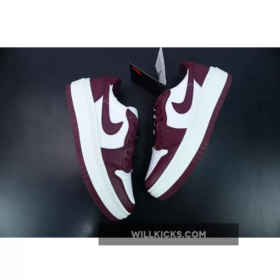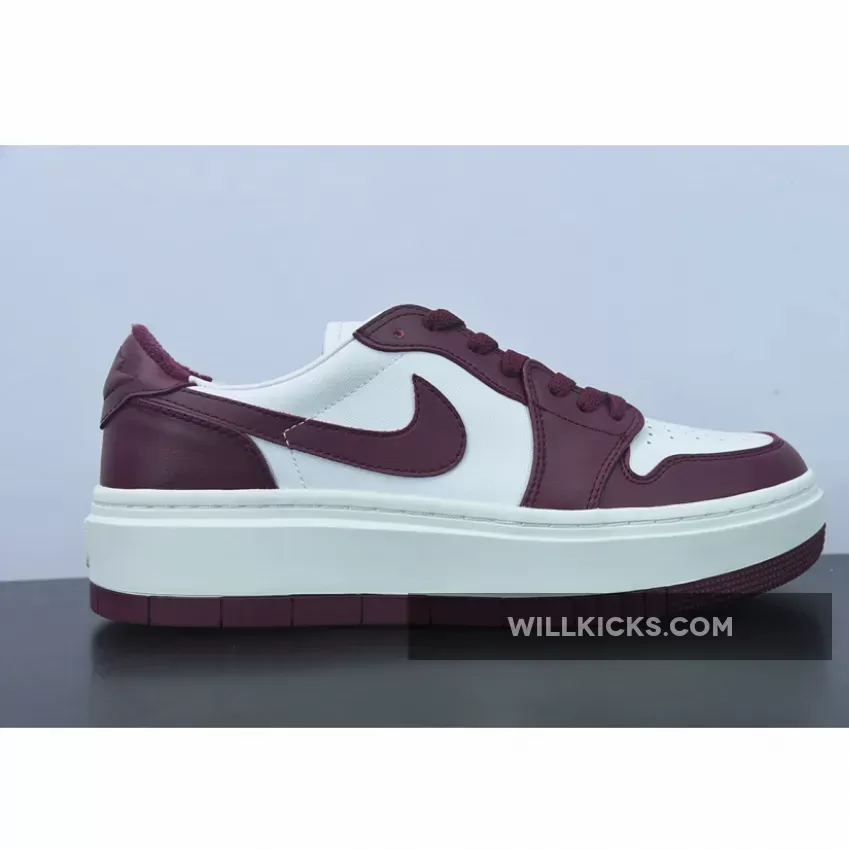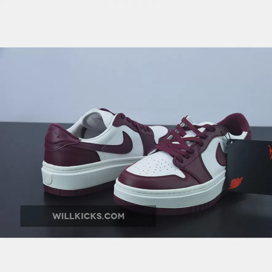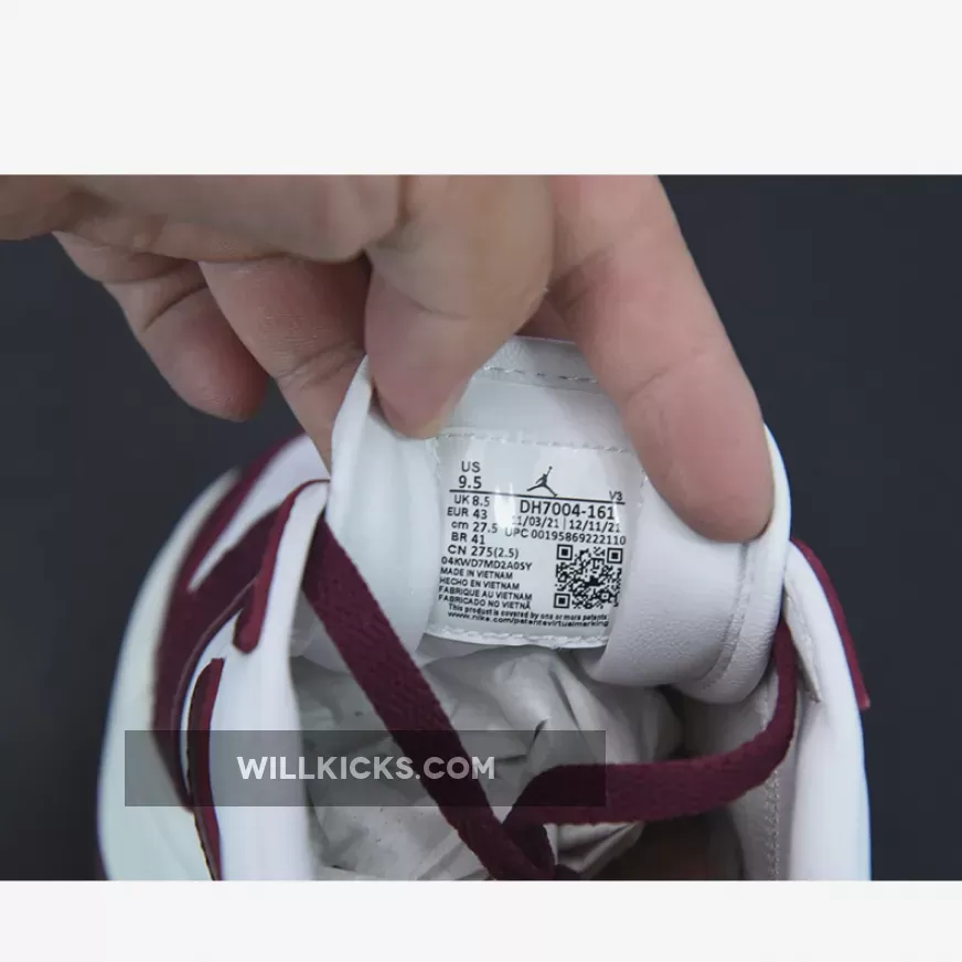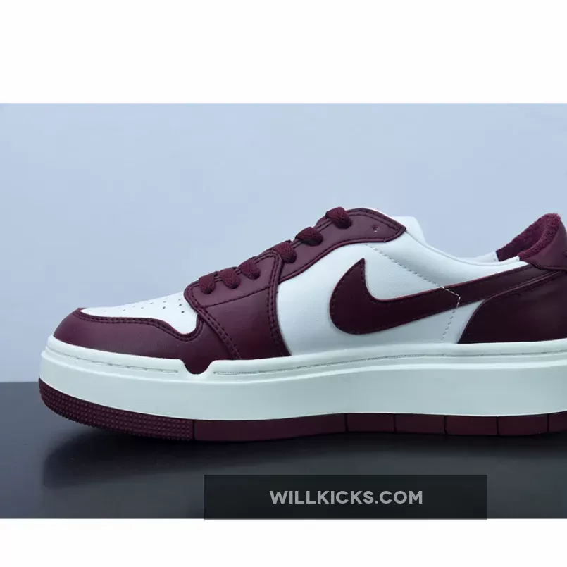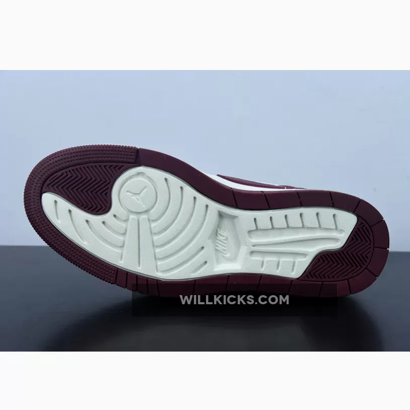 The Air Jordan 1 Low LV8D has a new white and winy-red colourway. Meet the Air Jordan 1 Low LV8D Team Red. This Peter Moore-designed AJ1 has an all-white smooth leather base. Its most eye-catching elements are the overlays and the signature profile Swooshes on both sides of the shoe in deep burgundy Team Red. The white tongue label is brandless as is the heel tab, though it has a Wings logo outline.