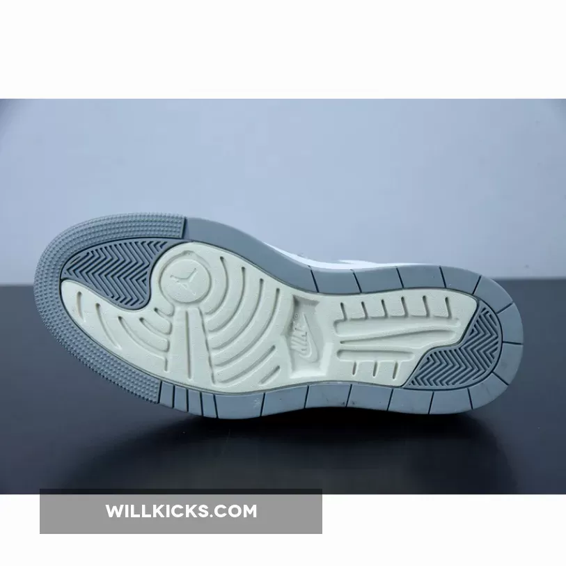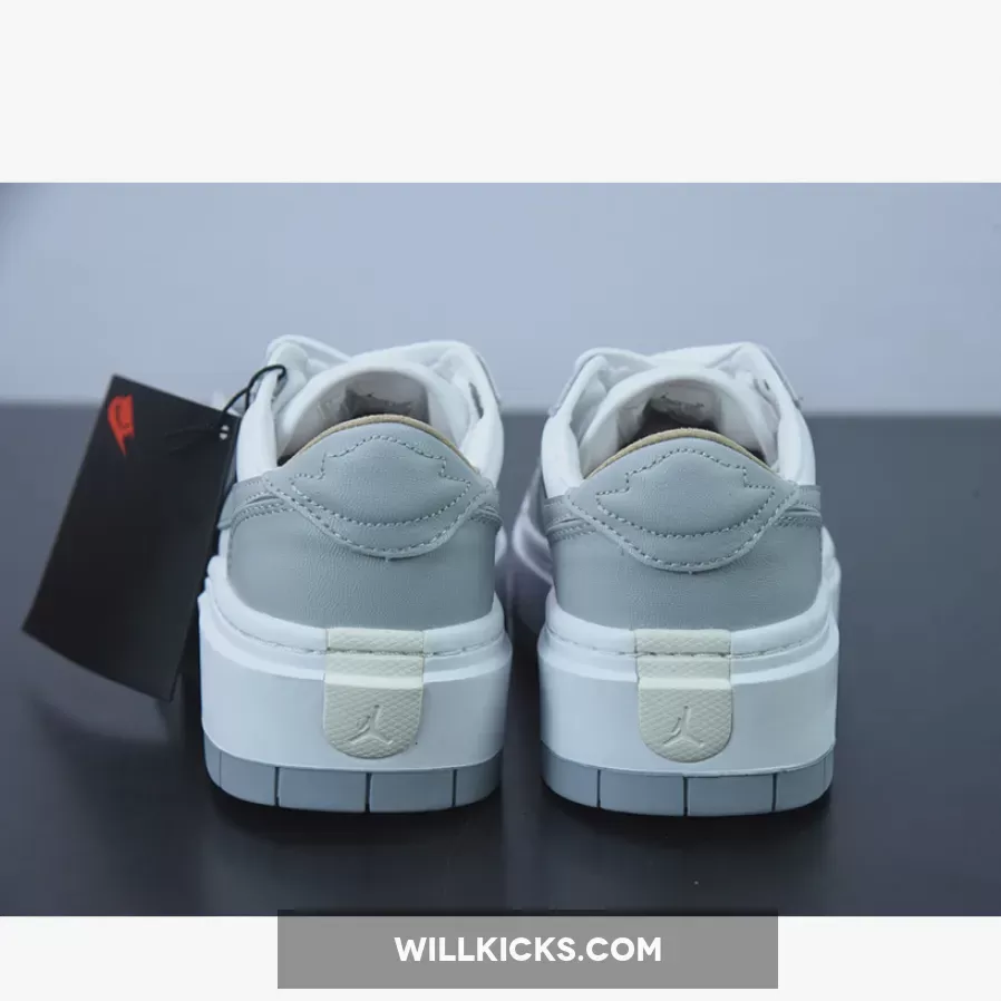 The latest Air Jordan 1 Low LV8D iteration features a minimalist greyscale colourway. Check out the Air Jordan 1 Low LV8D Wolf Grey.The base of this AJ1 is smooth leather in “colourless” white showing on the toe box and the quarter, matching the laces. The signature profile Swooshes on the medial and lateral quarters also follow suit. Pops of neutral colour come in the form of the tan suede accent on the collar and the cork insole. The highlight of the shoe is the white platform midsole.