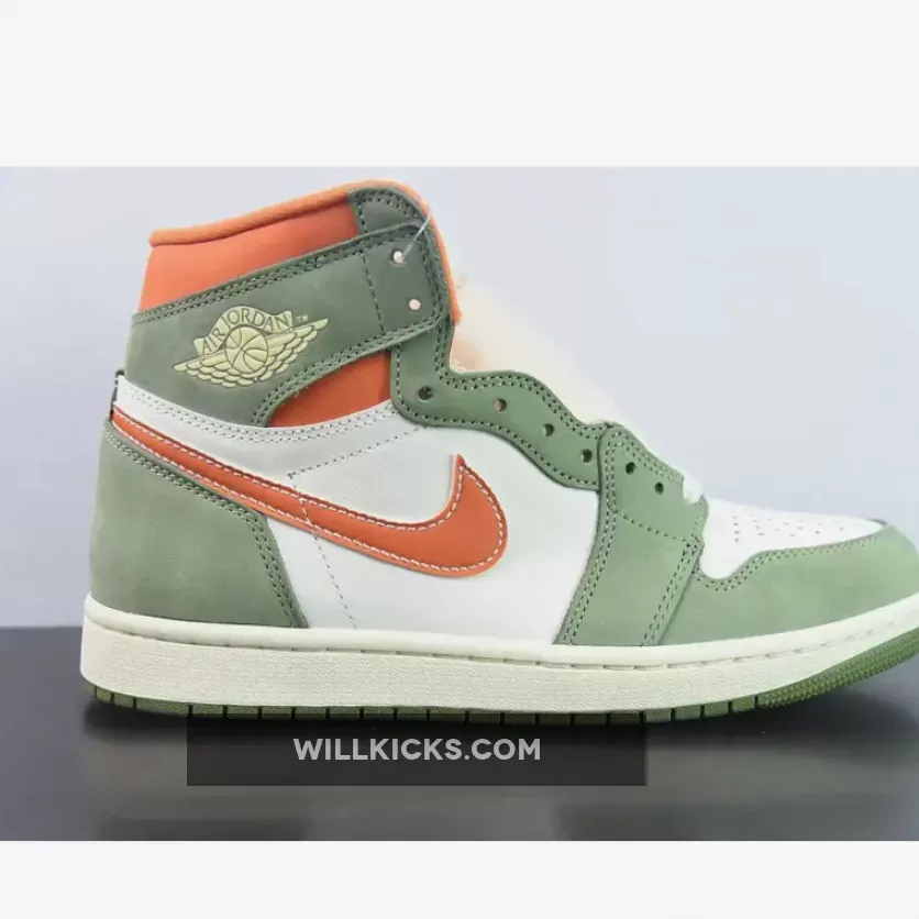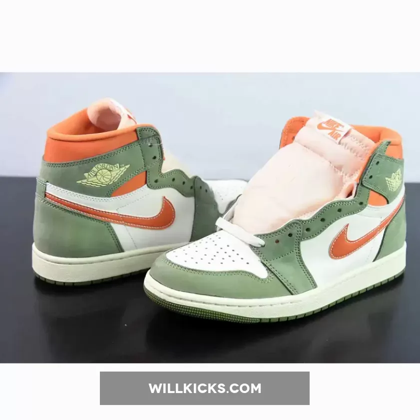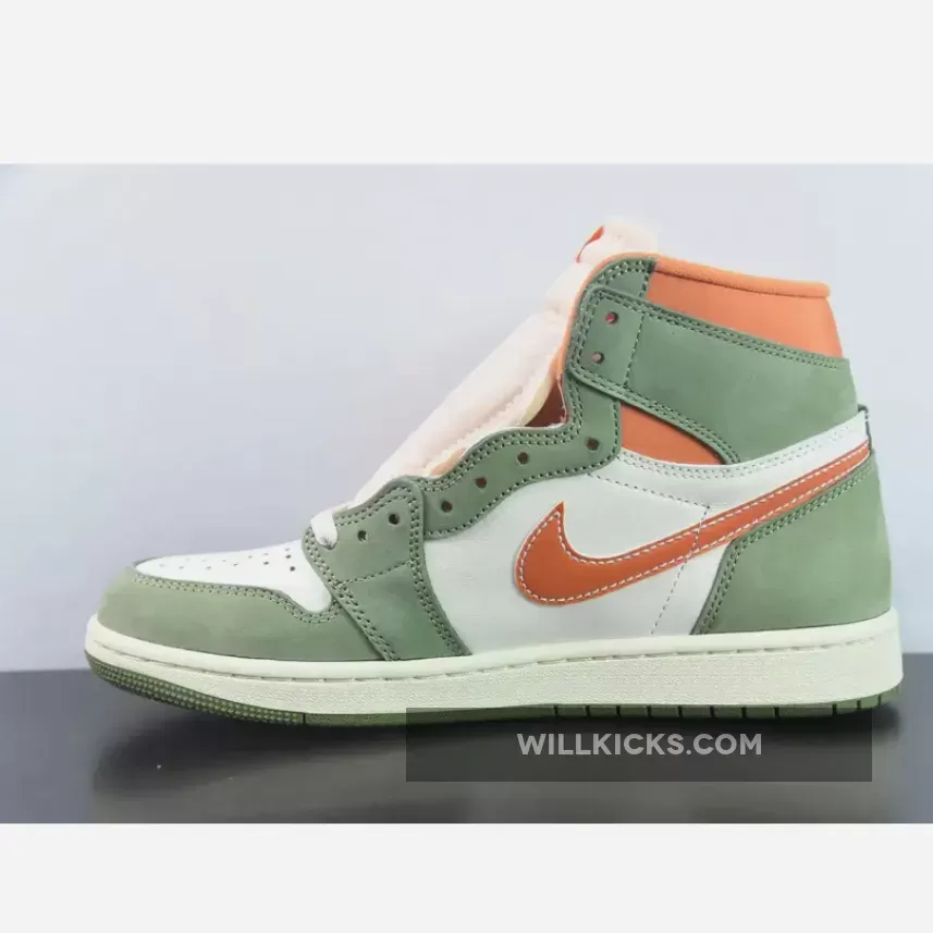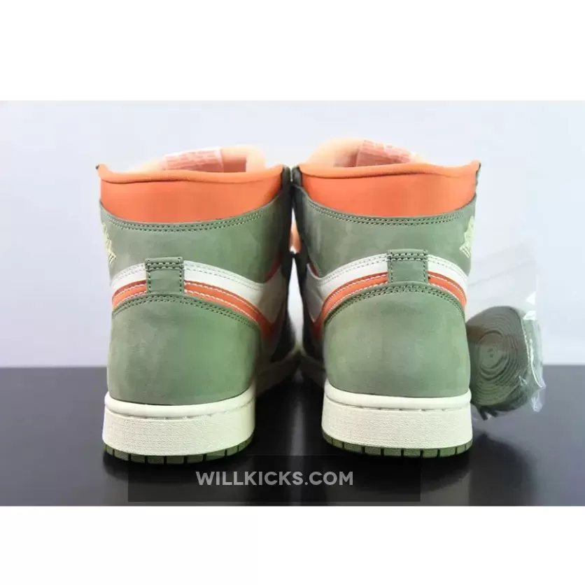 Deviating from the understated “Celadon” hue, the profile swooshes embrace a striking “Bright Mandarin” tone. This vibrant color also animates the underlays at the ankle, inner lining, and “NIKE AIR” text on the tongue, adding an unexpected twist to the overall palette.