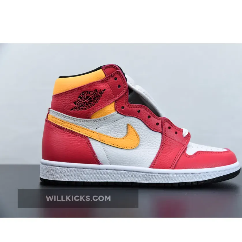 The Jordan 1 High OG Light Fusion Red is a new offering of the Jordan Brand’s world-famous Air Jordan 1 silhouette that has become one of the greatest Nike silhouettes of all time. The high top sneaker was first introduced in 1985 as Michael Jordan’s first-ever signature sneaker alongside the respective low and mid-top versions.The upcoming Air Jordan 1 is seen here with Light Fusion Red overlays constructed on a white leather base for a splash of contrast, resulting in a pair of Js with a very clean colourway that will persuade you to add these to your collection. Black accents then touch the laces and lining, and further branding details on the tongue label appear in a Laser Orange colourway together with the iconic Nike Swoosh logos on the quarter panels to complete the look.The Nike Air Jordan 1 High OG Light Fusion Red, set to launch later on this year, will have some hype around it especially in the basketball community.