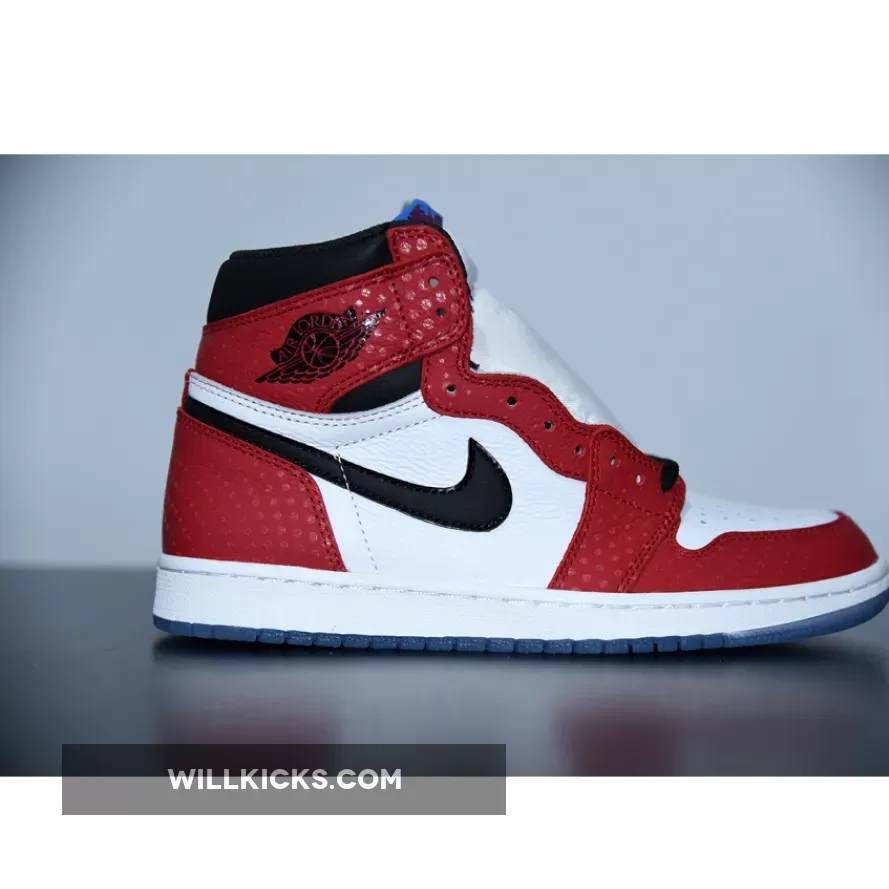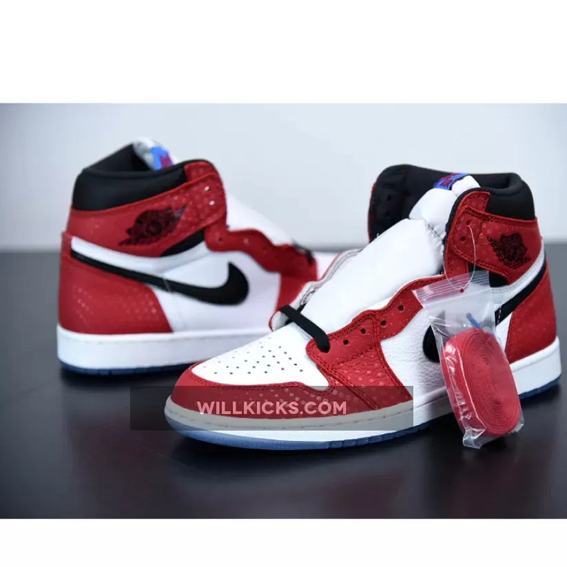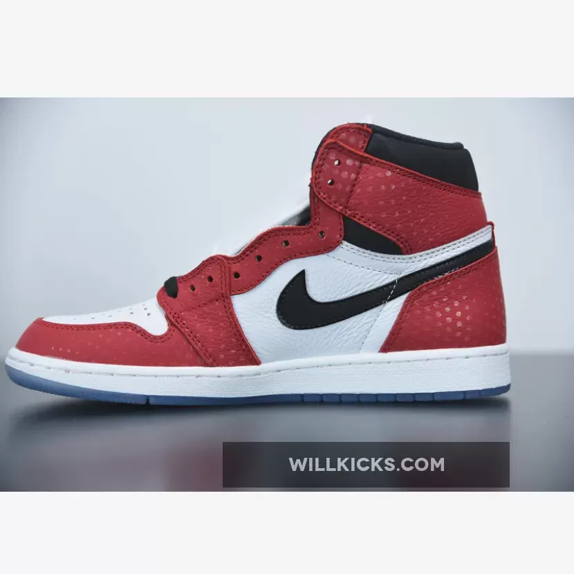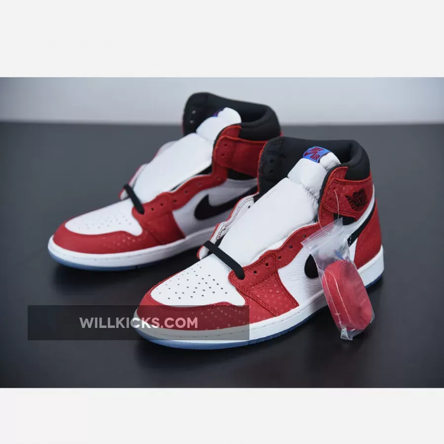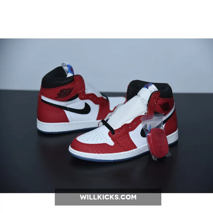 Previously dubbed the “Chicago Crystal,” the remixed variation known as the “Origin Story” Jordan 1 High OG features a 3M reflective textile red upper, with glossed-out black accents by the ankle collar, Swoosh branding on the sides and a glittery icy blue outsole. Unlike the regular Air Jordan 1 box, this version is specially marked to commemorate the collab between the hallmark comic book franchise and Jordan Brand.