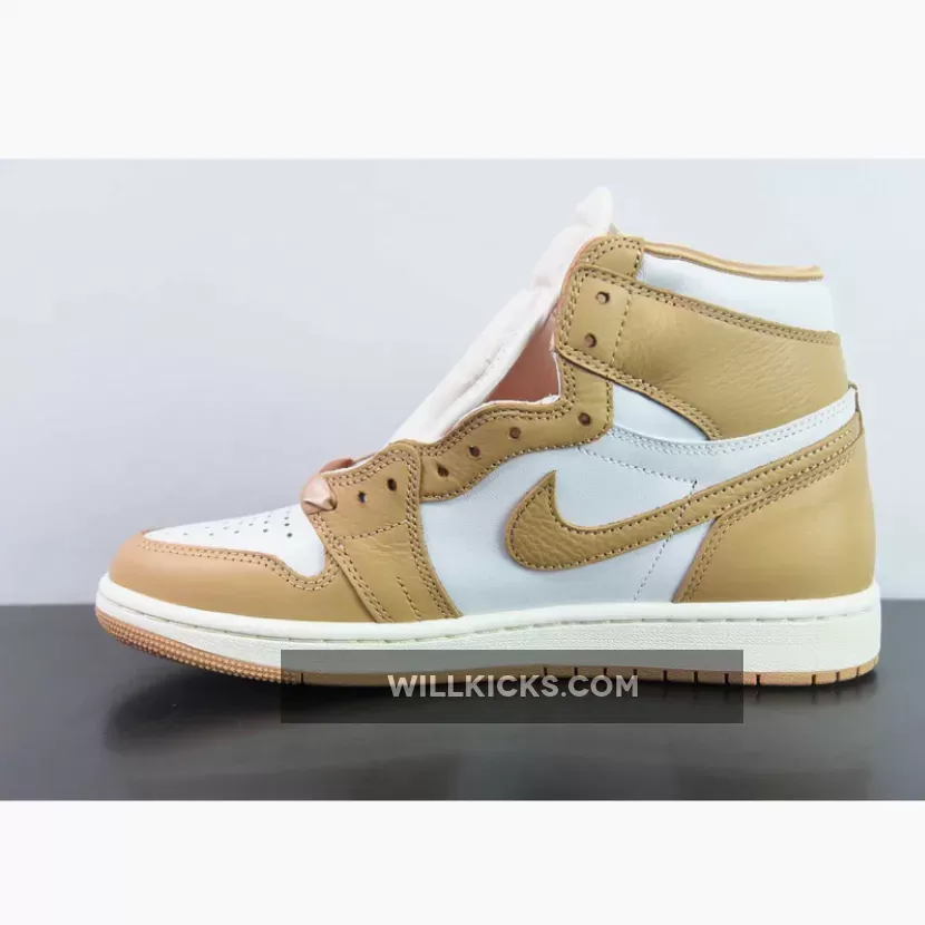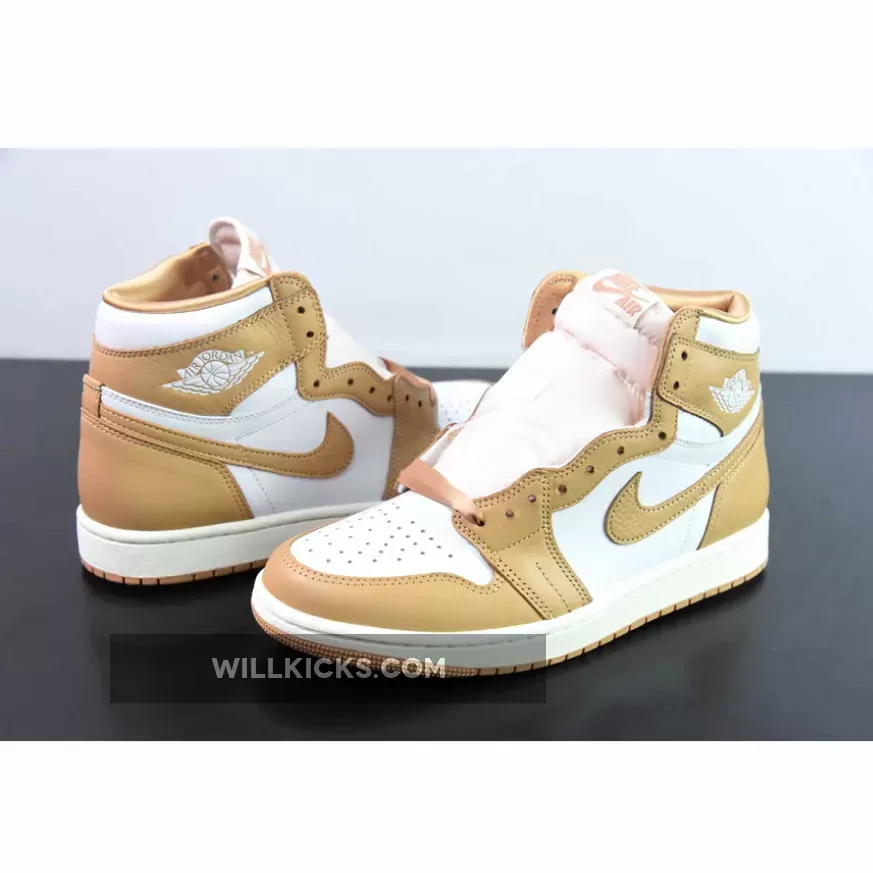 The significance of the Air Jordan 1 High OG Praline lies in its premium quality materials and eye-catching design. Done in a Praline, White, and Sail color scheme, the Air Jordan 1 High OG Praline is inspired by luxury handbags as it comes constructed with premium leather, mesh tongues and satin liners to give off that luxurious aesthetic. The midsole and outsole sport a crisp white, providing a clean and classic look, while the Nike Swoosh and Jordan Wings logo pop in a light pink hue.