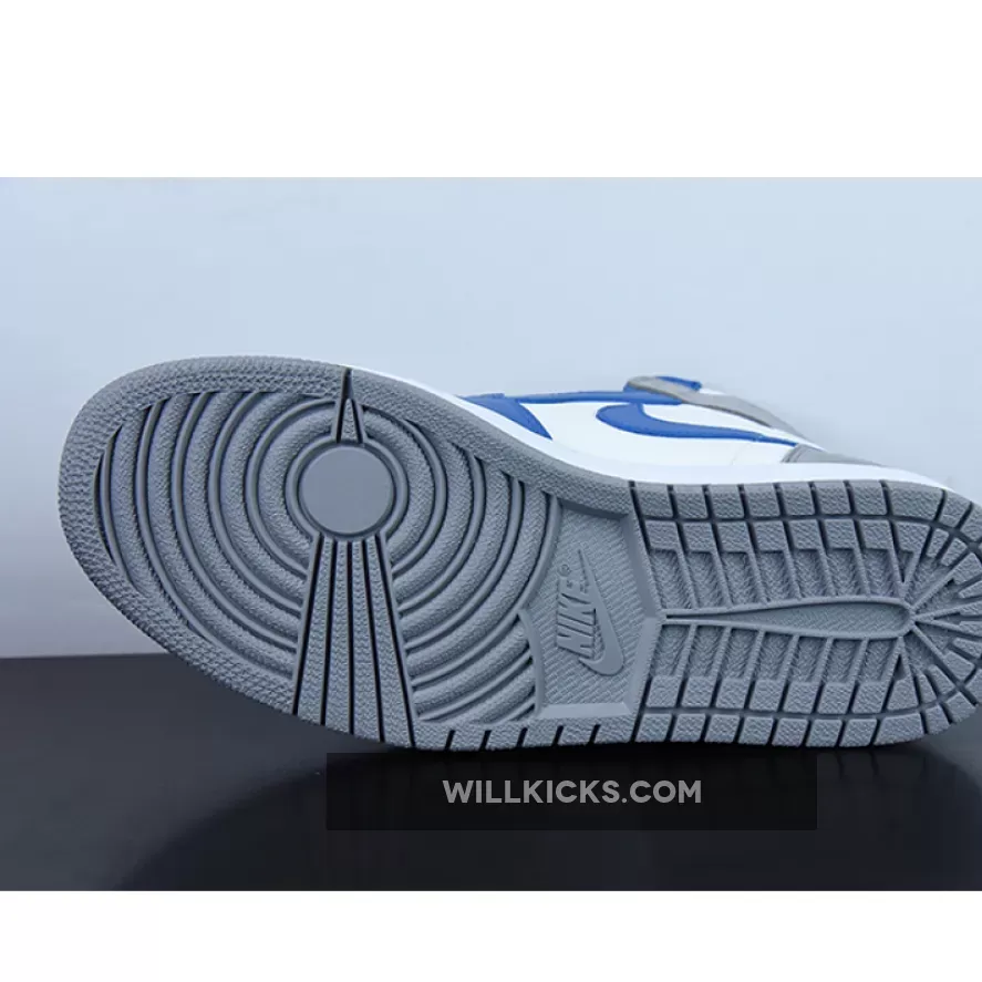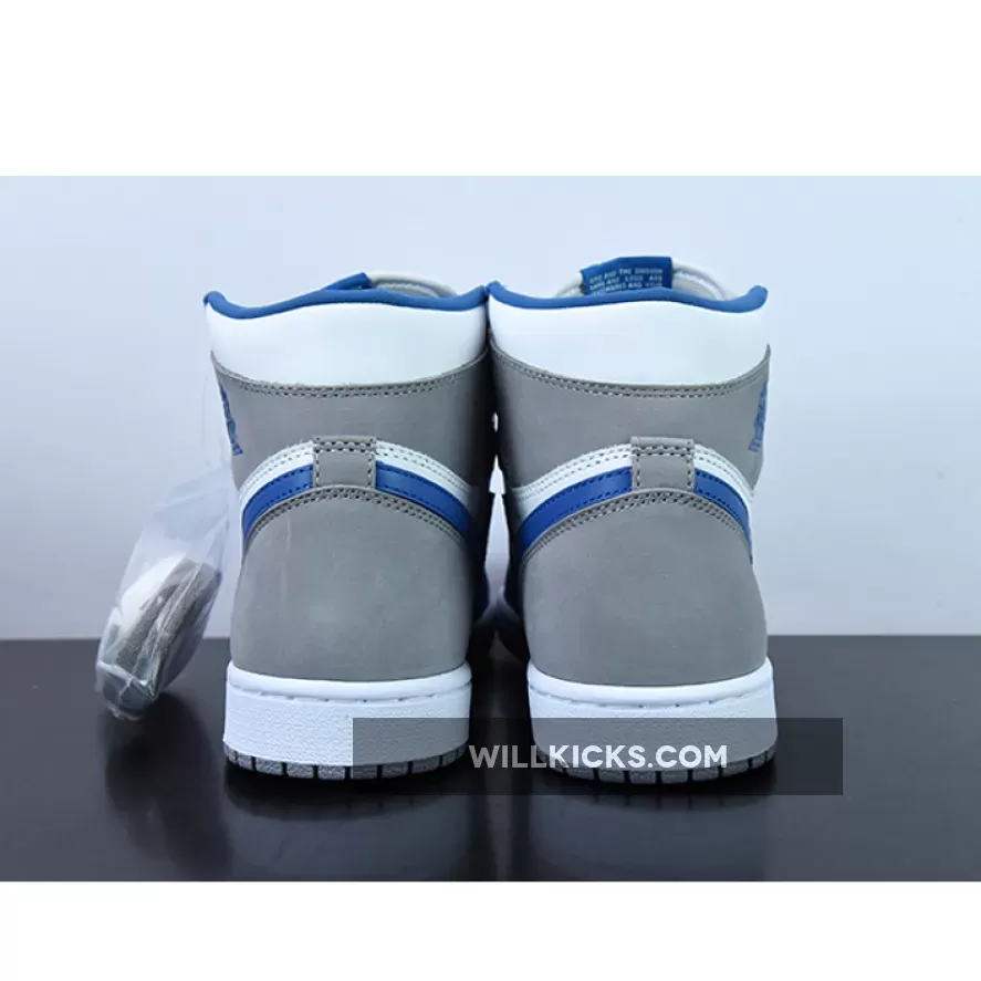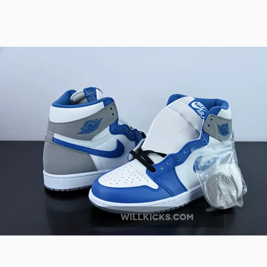 Clean white base, striking blue & cement accents. Quality materials & classic design make these Air Jordan 1s a must-have.