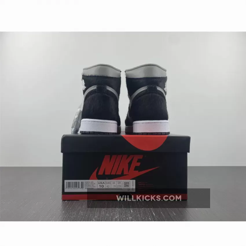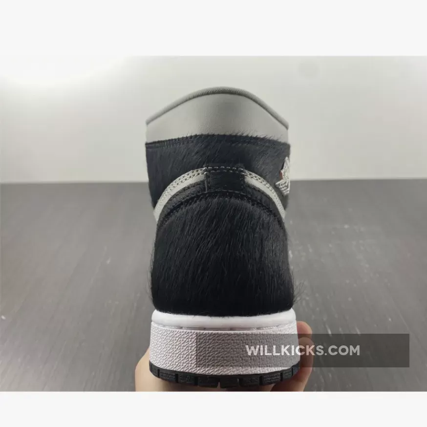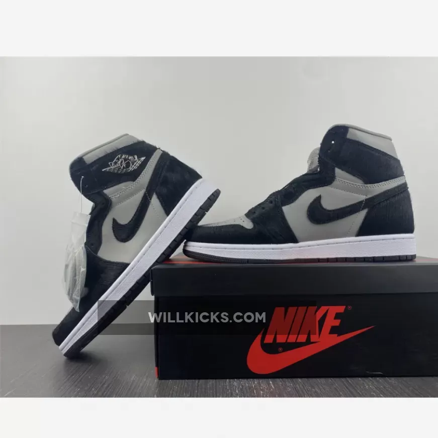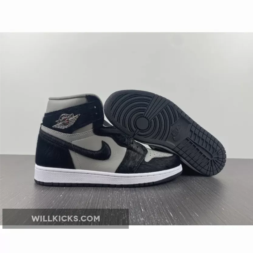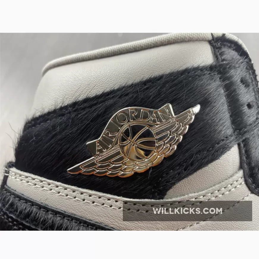 The women’s Air Jordan 1 Retro High OG ‘Twist 2.0’ presents the sequel to the AJ1 ‘Twist’ from 2019, featuring the same unique build but with a subtly refreshed palette. Like the older shoe, the upper pairs black pony hair with a smooth leather underlay. The latter is updated in a light grey hue, replacing the crisp white finish of the original. A molded Wings logo in metallic silver shines on the lateral collar, adding a bit of polish to the neutral design.