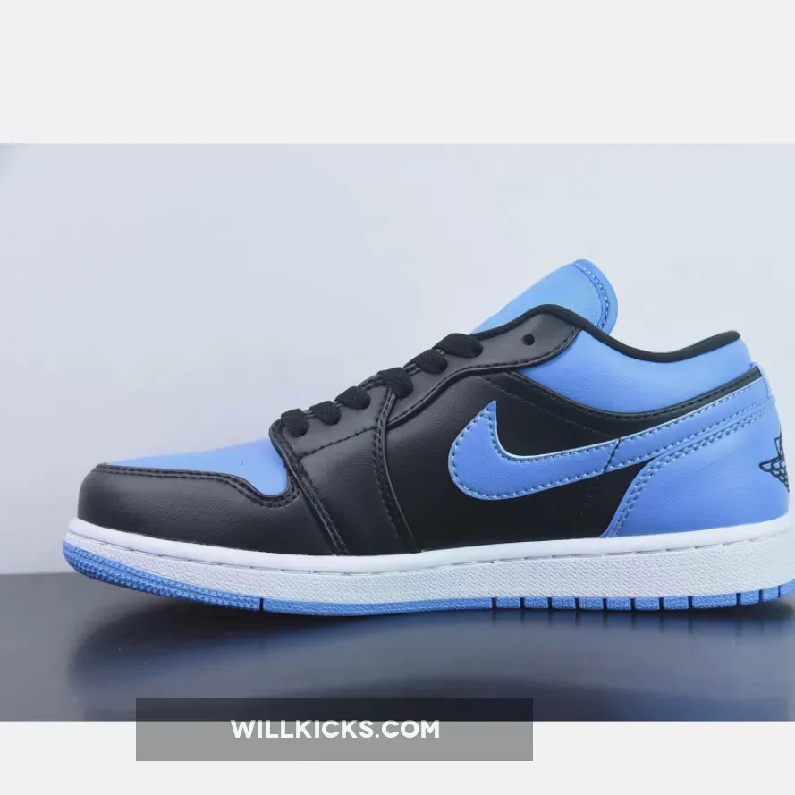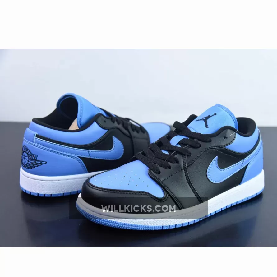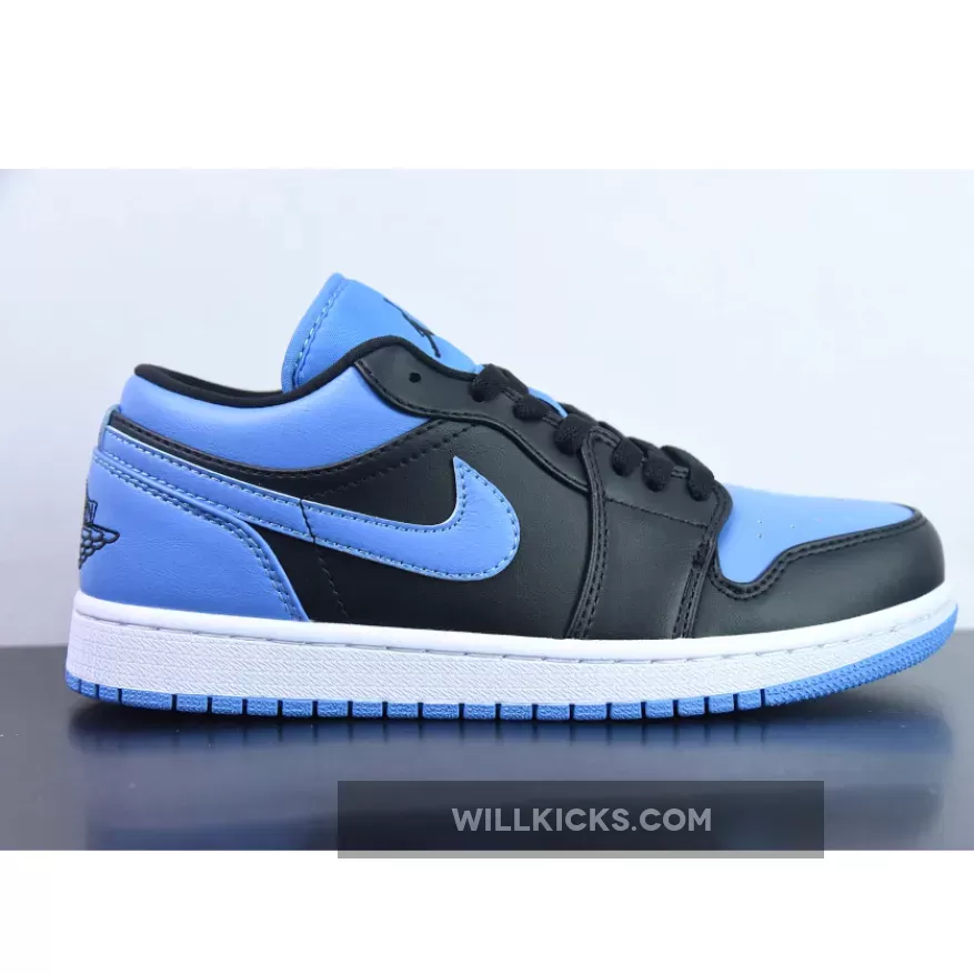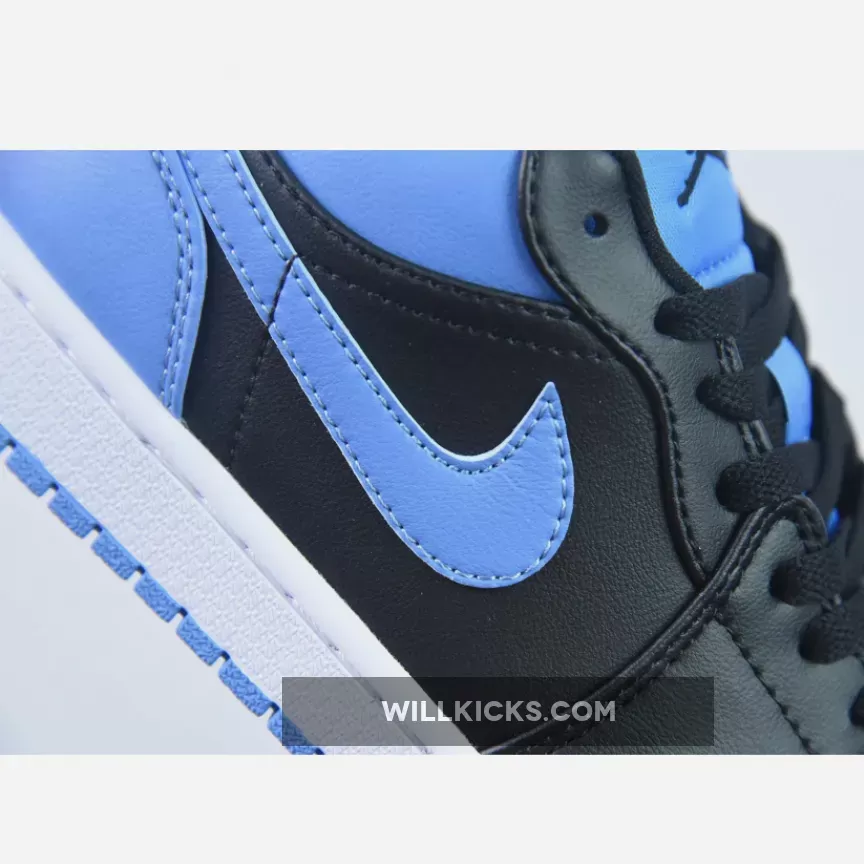 The Air Jordan 1 Low “University Blue” is constructed from a full premium leather outfit and mesh tongues dipped in “Black,” “University Blue,” and “White” hits.. Here, the UNC signature dresses not only the toe box, Swoosh, outsole, and heel but also the aforementioned fixture, the latter of which helps backlight the embroidered Jumpman. Elsewhere, much of the colorway is similar to its more historic counterpart, with black and white neutrals dressing the rest of the upper and midsole, respectively.