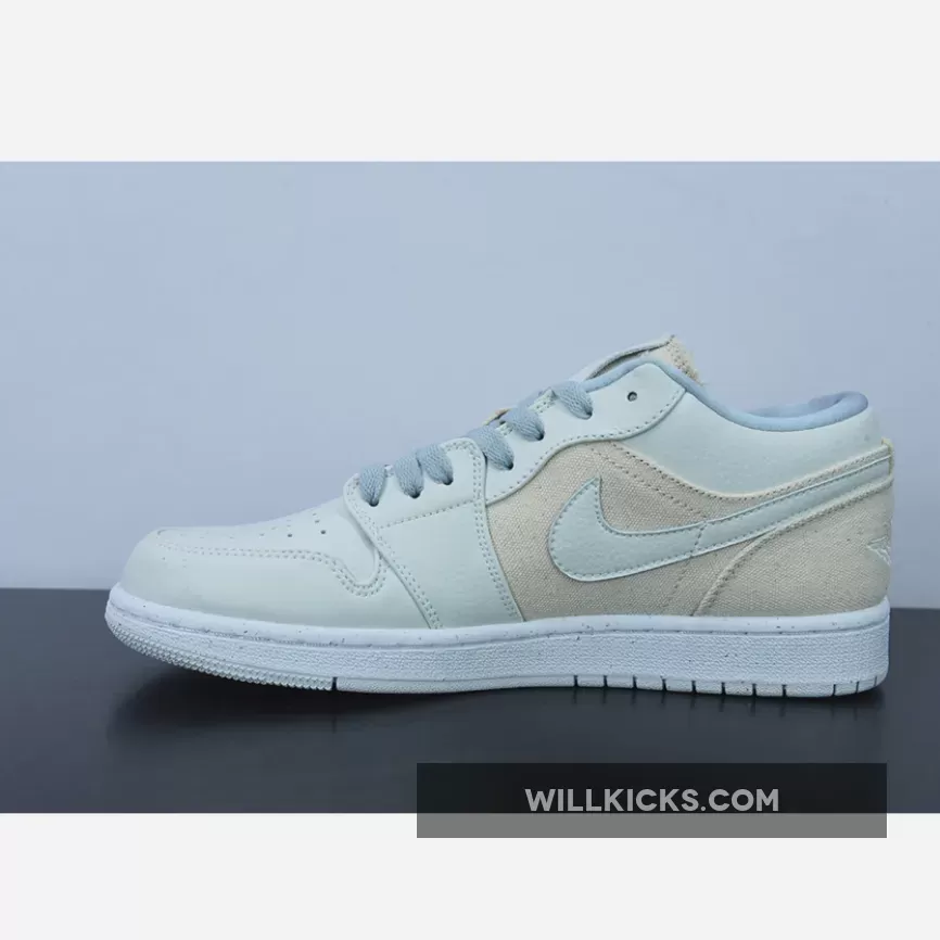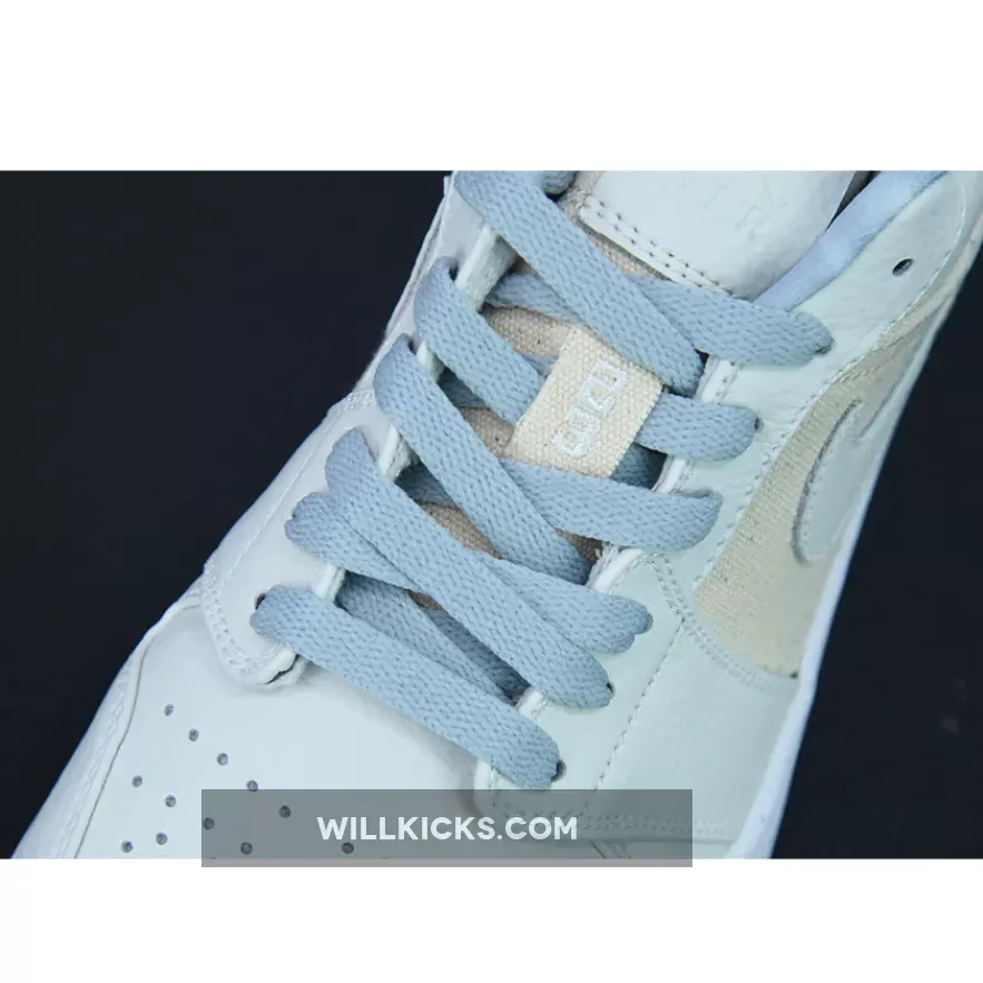 The Air Jordan 1 Low Canvas Blue Beige features a rare dainty take on the basketball slash lifestyle silhouette. Gone is the typical AJ1 colourway arrangement and in its place is an ethereal palette showcasing a light blue leather upper that’s nicely complemented with beige canvas side panels.