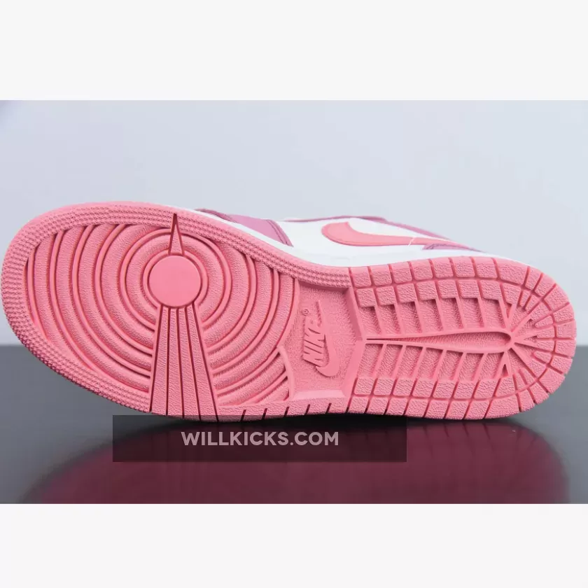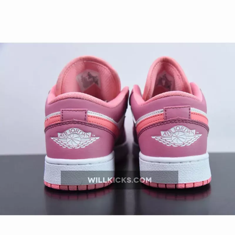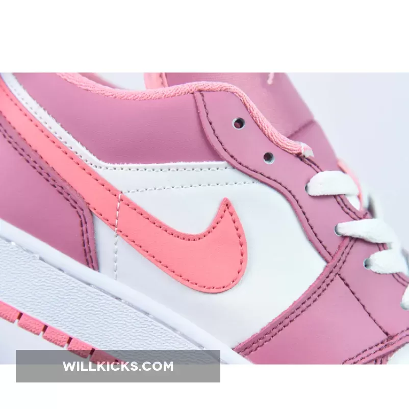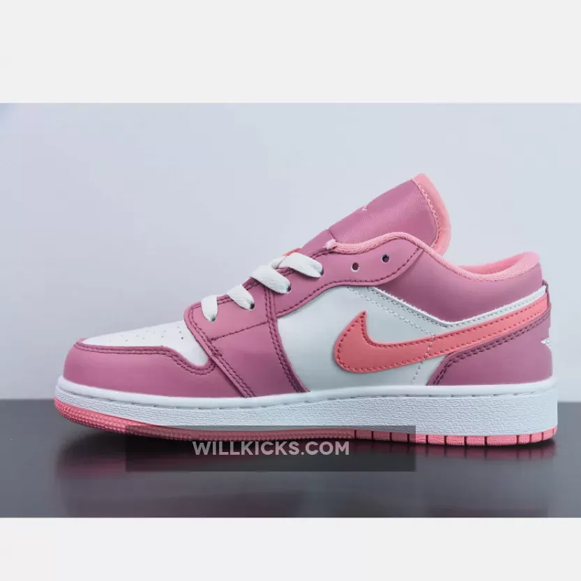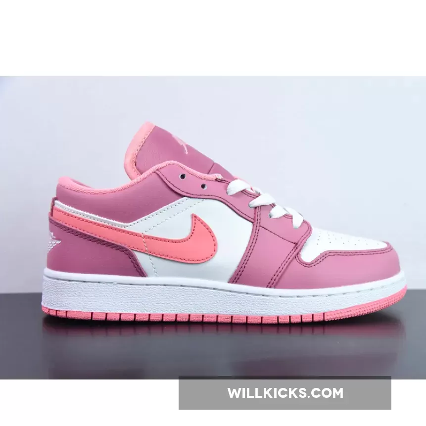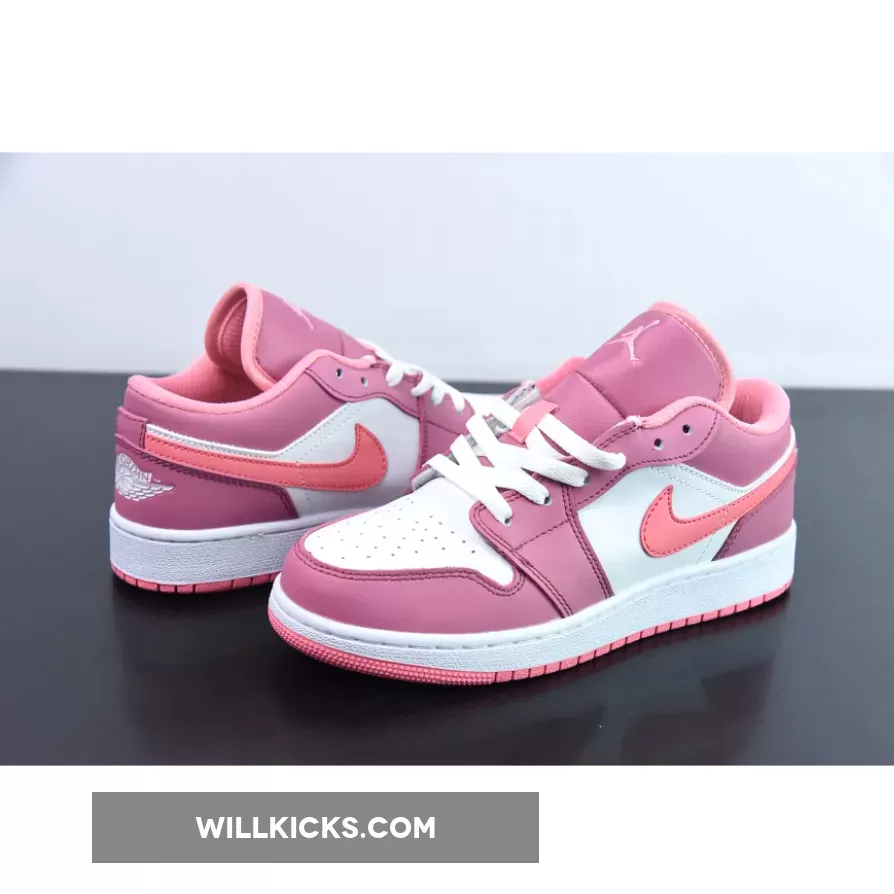 Jordan Brand’s only silhouette to feature both the Nike Swoosh and the Jordan Wings logos, the Air Jordan 1, is doused in charming shades of pink for this drop. Get ready for the Air Jordan 1 Low GS Desert Berry. This low-top smaller-sized AJ1 has a white leather base showing on the toe box and the mid-panel. The smooth leather overlays on the toe cap, the mudguard, the eye stay panel, the collar and the heel counter are in the titular Desert Berry shade. The mesh tongues follow suit. The signature profile Swooshes on both the medial and lateral mid-panels are in a light Coral hue, matching the embroidered Jumpman logos on the tongues, the tongue lining and the sock liners.