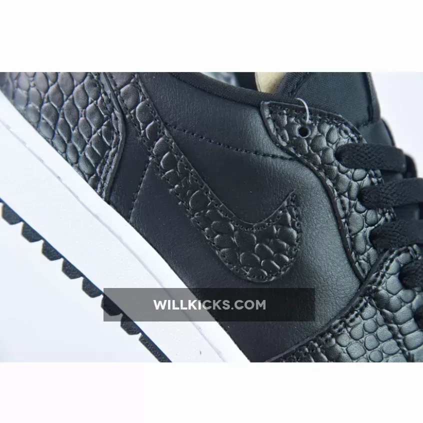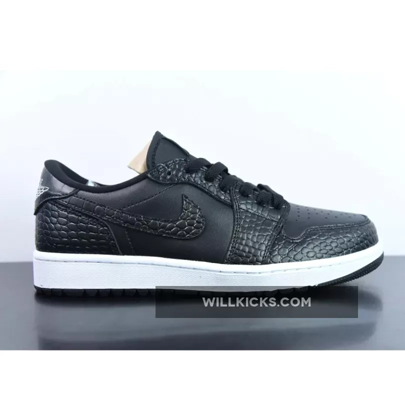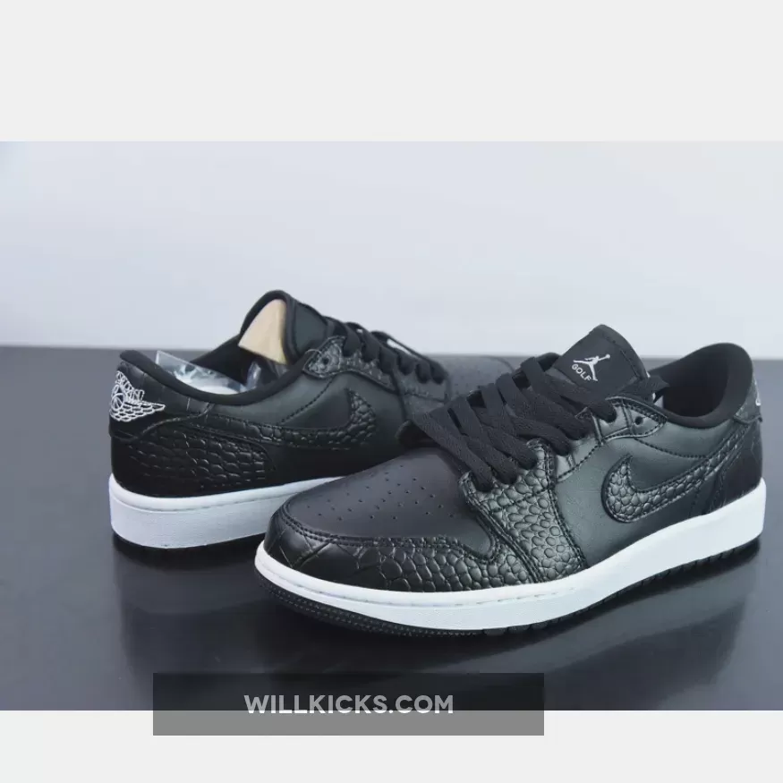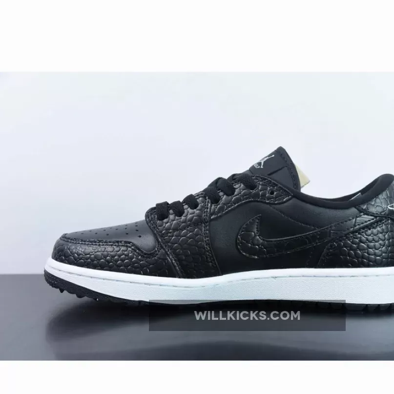 Jordan Brand’s relationship with Golf started through Michael Jordan himself; back in the 90s when MJ needed a healthy way to relax, nothing did it quite like swinging an iron down the fairway. It’s been a little while since Jordan Brand started creating Golf-inspired Player Exclusives (PEs) for Michael, but luckily for us, it means that whacky footwear is no longer an excuse to stay off the Green. Arriving in this Golf-appropriate make-up is the Air Jordan 1 Low Golf in “Croc Black”, a classy shoe for anybody’s game.This isn’t the first time we’ve seen the Air Jordan 1 get the sporting makeover, having already come out in the “Shadow” and “Royal Blue” colourway in the summer of ’22. Although now the smooth leather upper has been swapped out for mock-crocodile leather, bringing a different level of class to your outfit. A foam tongue and standard black laces can be found here as it is on the majority of Air Jordan 1 Low releases, but that’s it in terms of the shoe’s standard features. The forefoot pivot circle has a more aggressive lug depth that extends to the backfoot and even the star count on the toe has been beefed-up.Fancy improving your handicap in style? Or even if you’re a fan of the low-cut Air Jordan 1, this “Croc Black” edition is a solid pair for the collection.