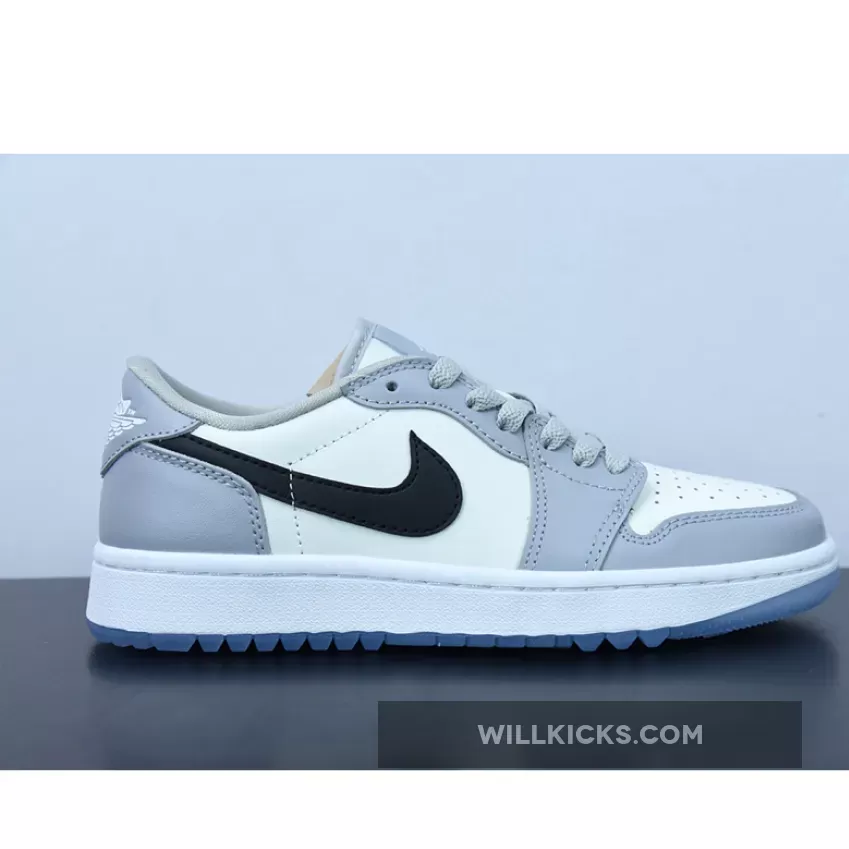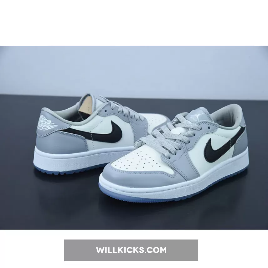 Level up your game in style with the Air Jordan 1 Low Golf Wolf Grey. Black Nike Swooshes in both the lateral and medial side panels round off the monochromatic palette of the upper.