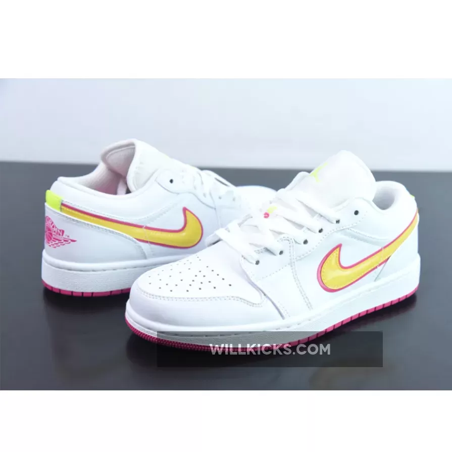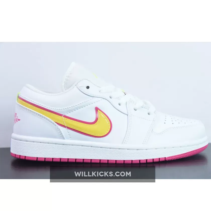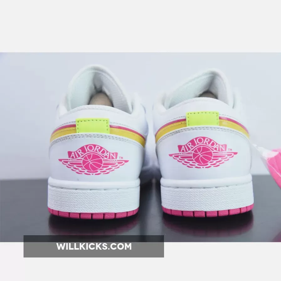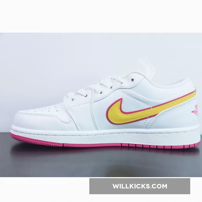 Pretty! The Air Jordan 1 Low GS White Yellow Pink is stunning 🤩. Quality is topnotch 💯. A must-have for any sneakerhead 👟. #AJ1 #SneakerGoals #SummerVibes 😎