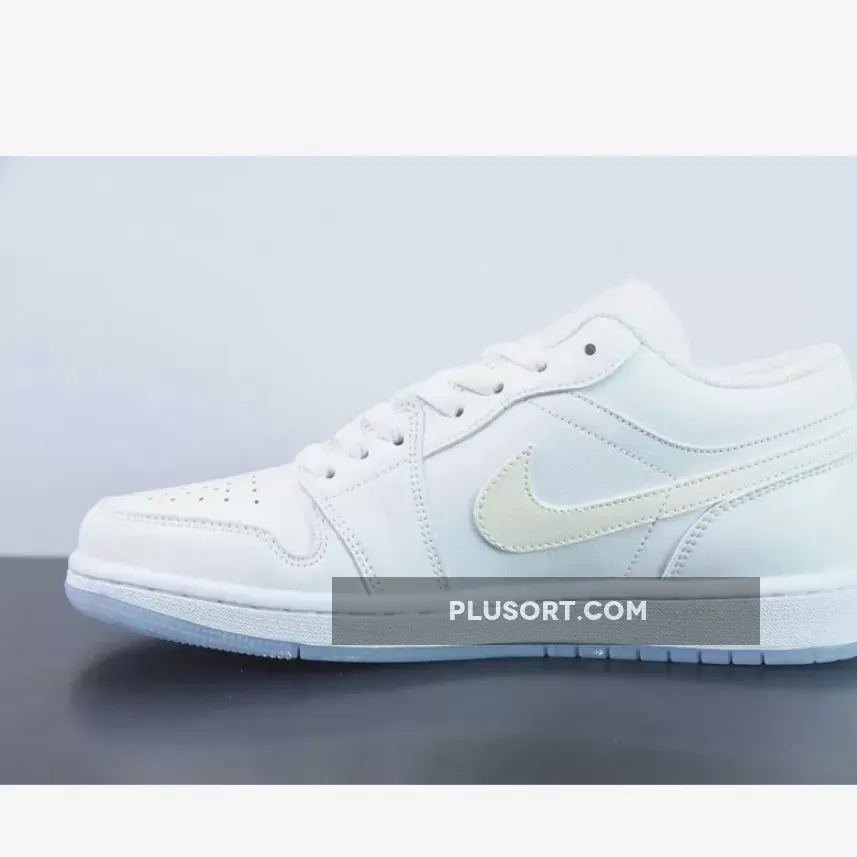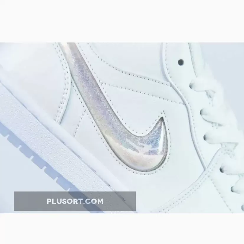 Featuring a clean White leather upper, the shoe ensures breathability with toe box perforations, matched by mesh tongues and inner lining. Shimmery iridescent glitter Swooshes shine on the lateral side, while a Sail-colored Swoosh graces the medial. Similar to the effect of a snow globe, the bulbous iridescent profile swooshes house hundreds of shimmering specks of glitter that fill each portion of the check with each step.