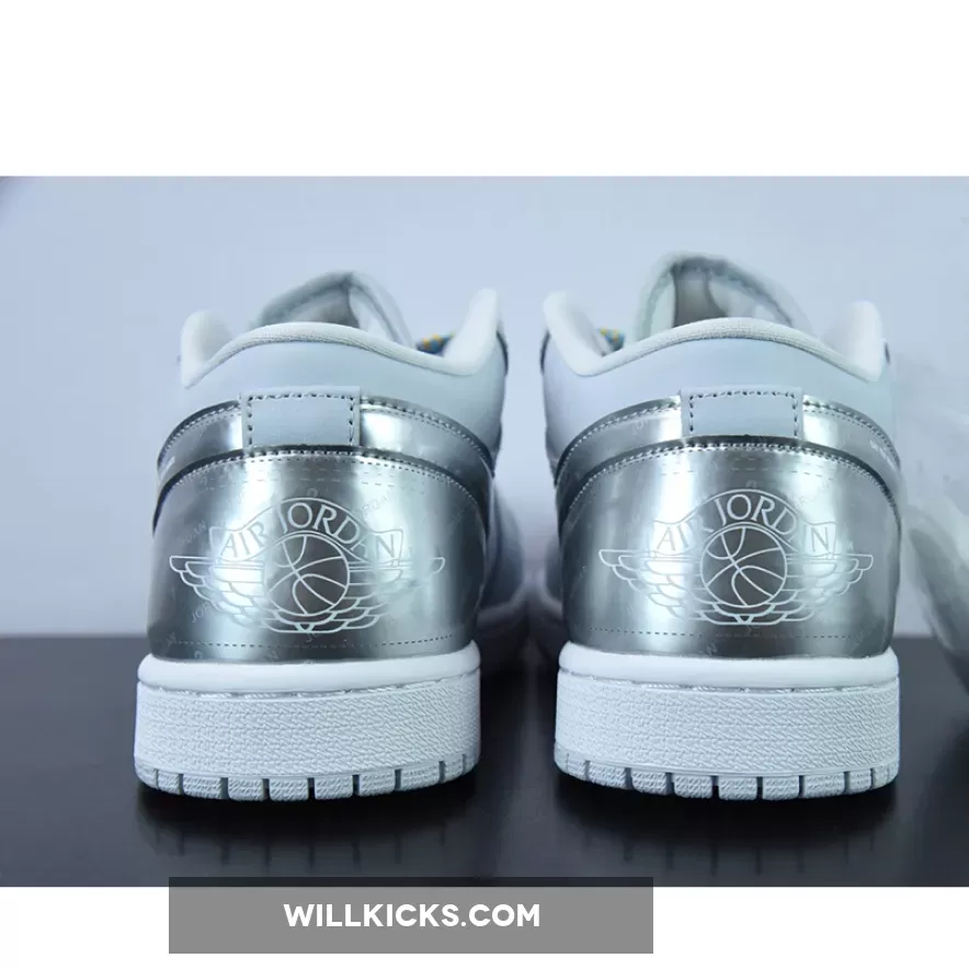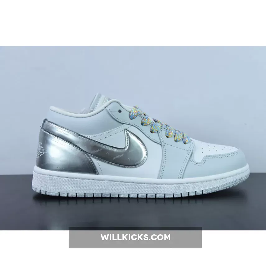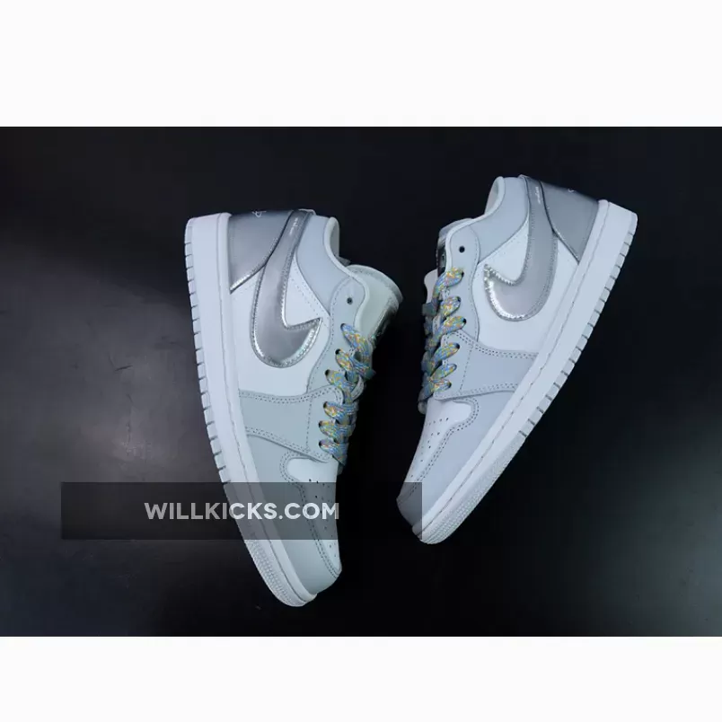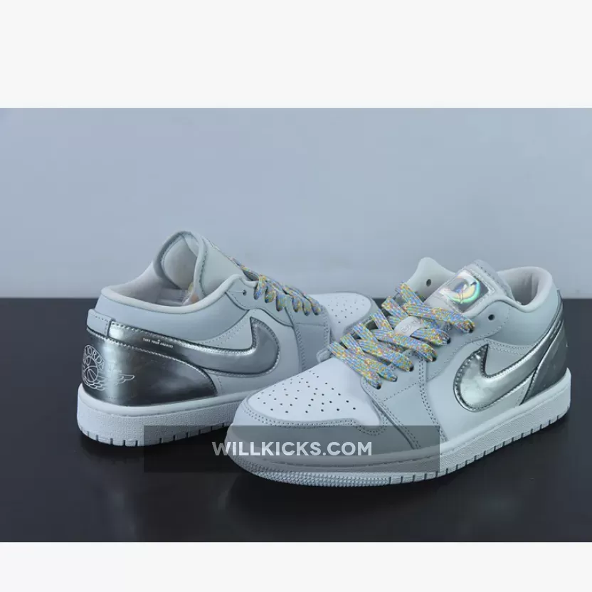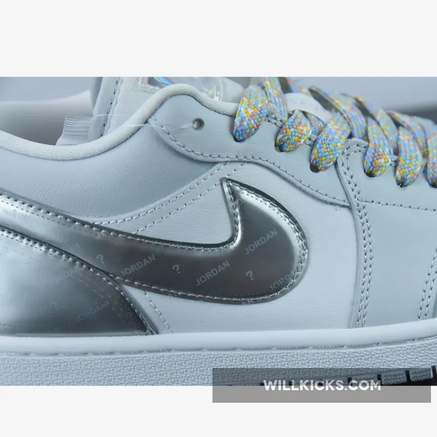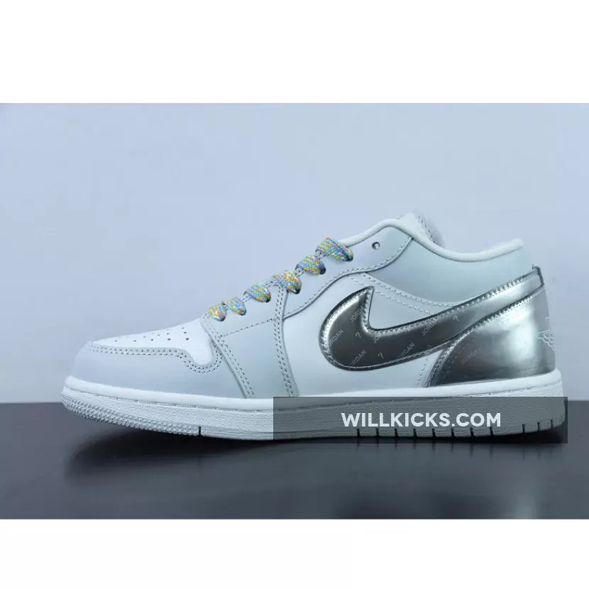 Tear-away kicks have been gaining traction over the past couple of months, and now the Air Jordan 1 Low is the latest model to get the treatment. Originally arriving in shades of metallic silver, grey and white, the Air Jordan 1 Low “Tear-Away” continues to play on the metallic theme underneath its chromatic exterior. Starting off with a crisp white base and super-clean light grey overlays, the “Tear-Away” AJ1 sees metallic detailing dress the Swoosh and heel panel. Peering closely at these panels, Jordan Brand seem to make no secret that something lies underneath, with the words “take your chances” printed on the Swoosh, and tiny printed question marks printed all over the panel. Peeling away this layer reveals pretty pink-nude panelling underneath, which adds an extra cute touch to the otherwise tonal make-up.