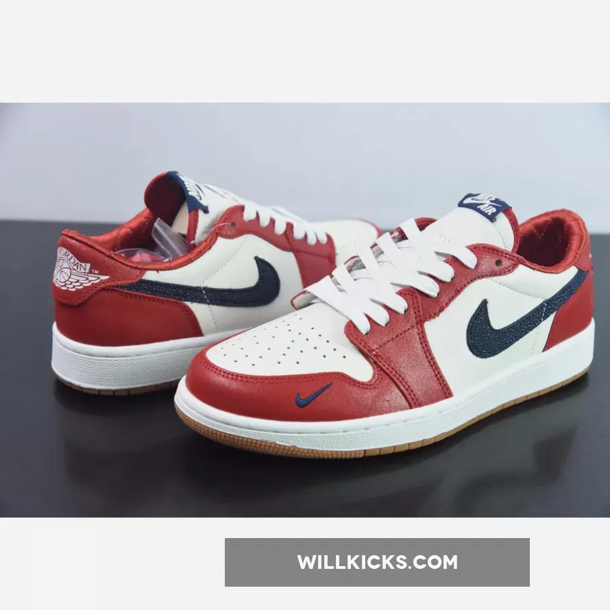 Following a look at the Air Jordan 1 Low OG UNC PE just last week, another equally impressive Air Jordan 1 Low OG PE has surfaced with this pair for the Howard University Bison basketball team. Covered in the school’s team colors, this Air Jordan 1 Low OG Player Exclusive starts off with a white premium suede construction on the base of the upper which is joined by red cracked overlays and Navy safari-textured Swooshes. Additional details include mini navy Swooshes on the lateral toe, Bison’s logo stamped onto the insoles, and quilted satin liners. Nike Air branding on the tongues, Sail rubber midsoles, and Light Gum rubber outsoles finish off the look on this Air Jordan 1 Low OG “Howard University” PE. Like most PEs, don’t expect these to ever become available to the public.