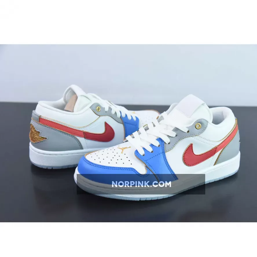 As a heartfelt tribute to the nation’s flag, the Air Jordan 1 Low “Philippines” uses the country’s national colors to create a unique sneakers. This Pair comes constructed using two different types of leather, smooth takes care of the base and a tumbled leather is spotted on the overlays.