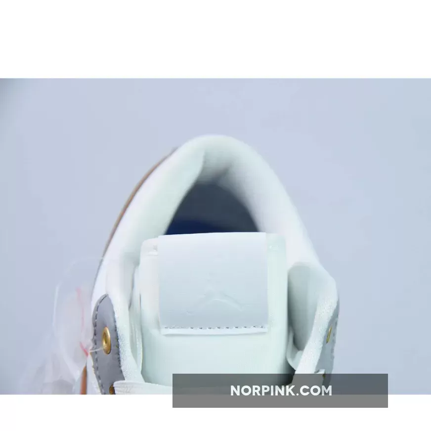 The sneaker starts off with a White hits on the base and lining, which is then offset by the Blue and Grey overlays on the forefoot, toe, eyestay, and heels. The Jumpman on the tongue gets elevated, debossed on premium White leather. And at the rear, the heels boldly sport the renowned Wings emblem in Gold, a parallel to the sun on the flag. A “23” graphic takes its place on the insoles, before the White midsole and crystal rubber outsoles bring the entire look together.