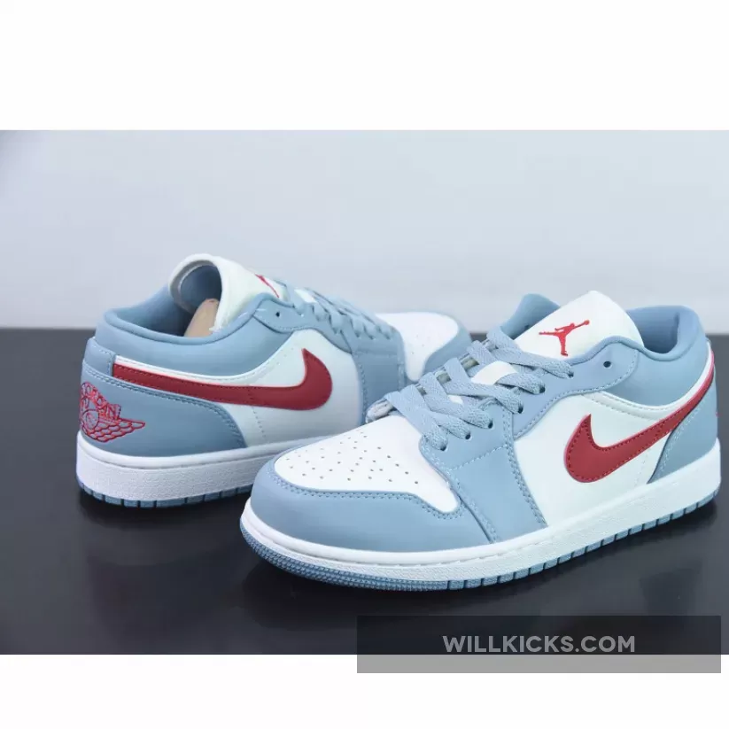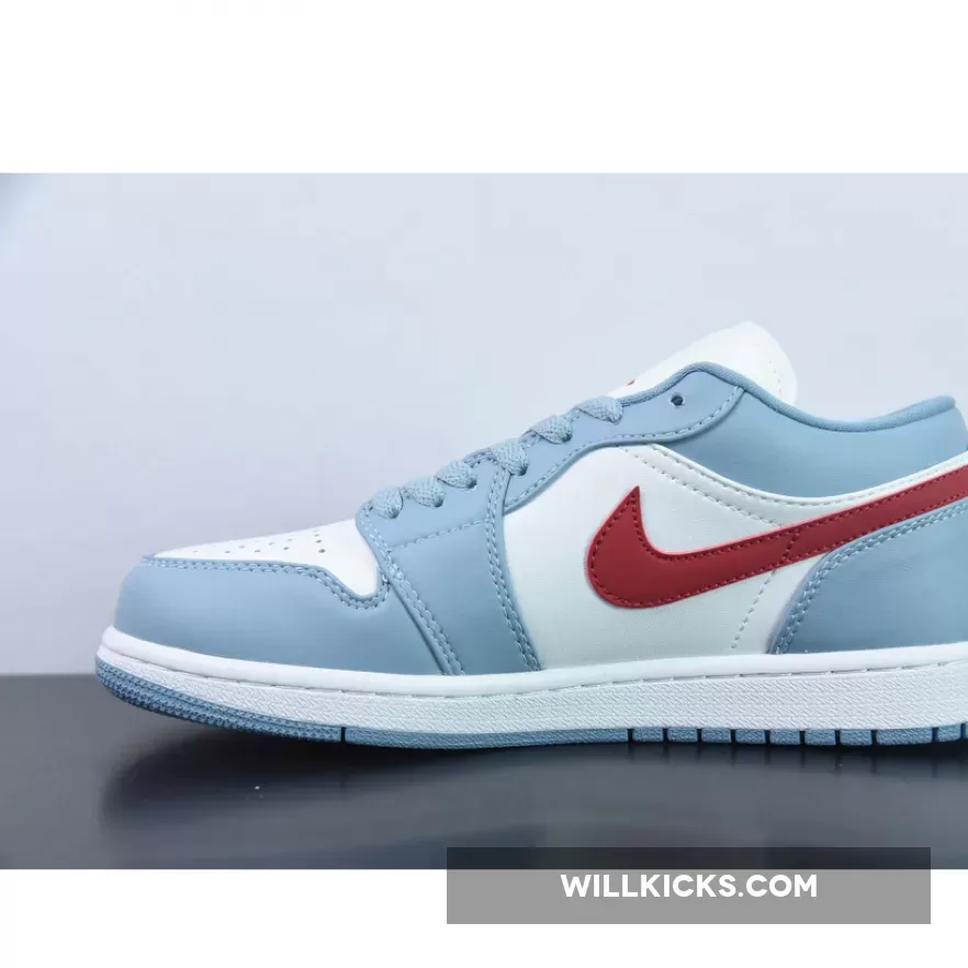 Solid design on the Air Jordan 1 Low Blue Grey Dune Red. Quality materials throughout. Perfect for casual wear. Shipping was surprisingly swift. Highly recommend!