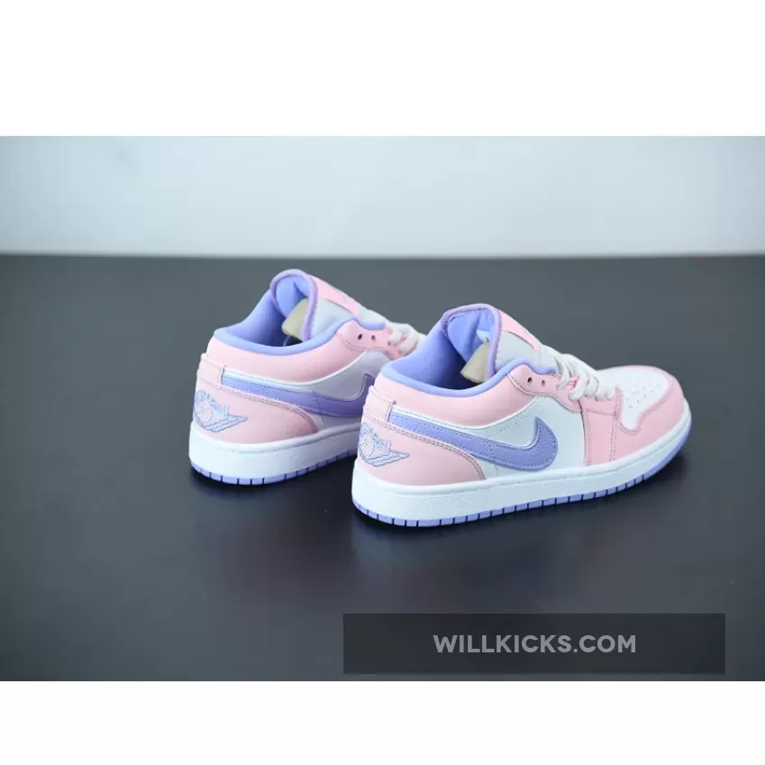 The Air Jordan 1 Low SE ‘Arctic Punch’ refreshes the classic silhouette with a delicate color scheme. The all leather upper combines a crisp white base with soft pink overlays and a lavender Nike Swoosh. The latter hue is repeated on a Jumpman icon on the tongue tag and a Wings logo embroidered on the heel. Lightweight cushioning is provided by an EVA wedge housed in the rubber cupsole, along with an encapsule Air sole unit nestled under the heel.