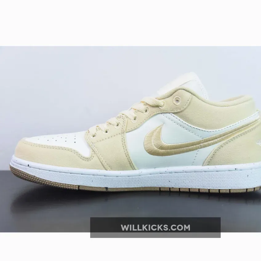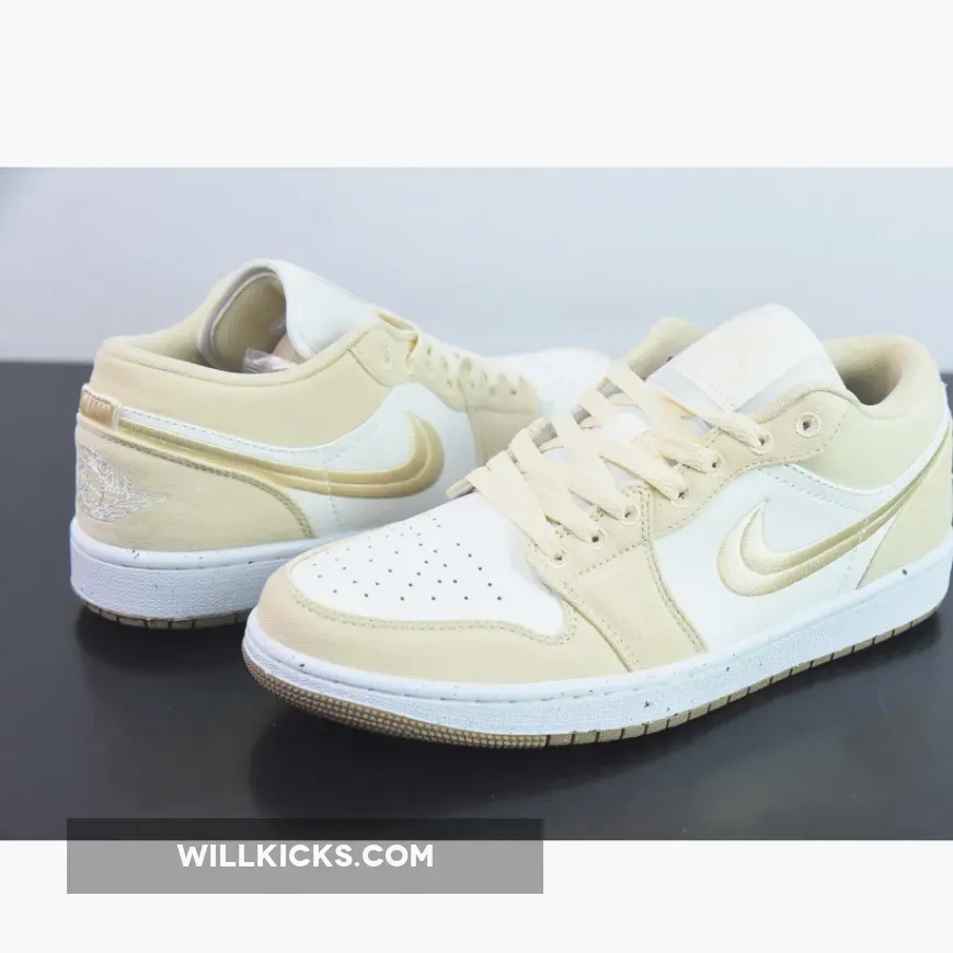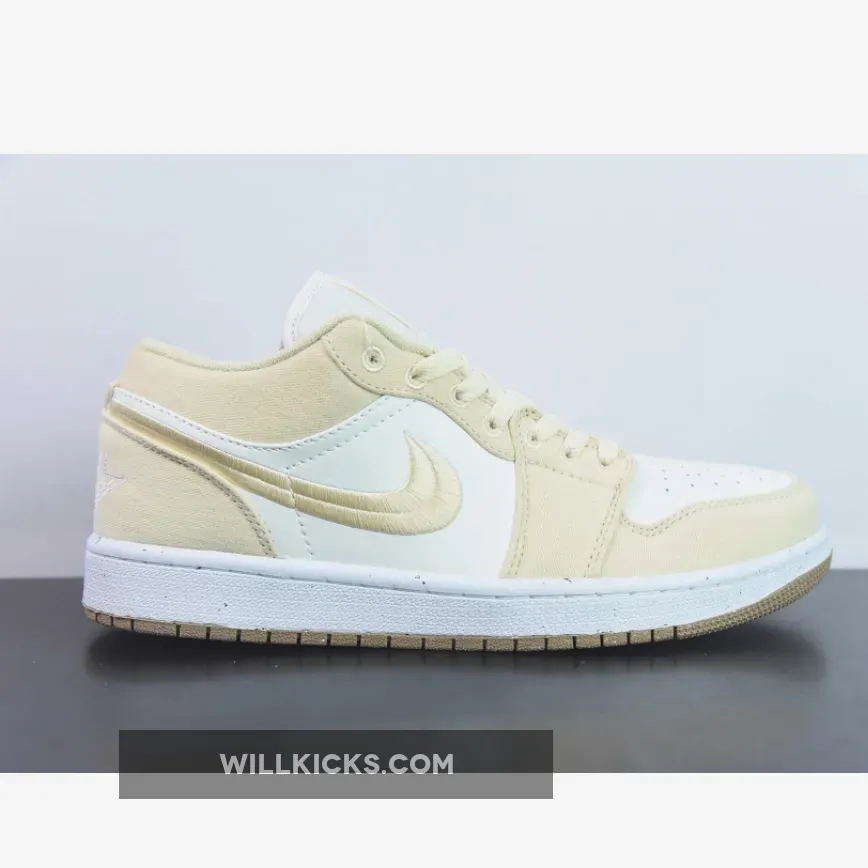 Dressed in a Team Gold and Sail color scheme. This offering of the Air Jordan 1 Low comes constructed with a leather base and canvas overlays to give off a premium feel.