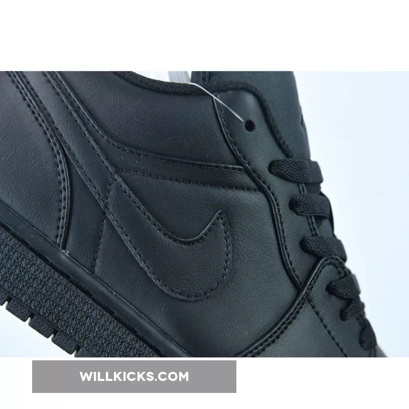 You can never go wrong with the classic look of Air Jordan 1 Low Triple Black. This sophisticated pair rivals elegant brogues with its premium design. It features a smooth and buttery soft inky leather base which is complemented by matching smooth leather overlays. The sleek Nike Swoosh, flat laces and lightweight tongue are all dressed in the same dark hue as well.