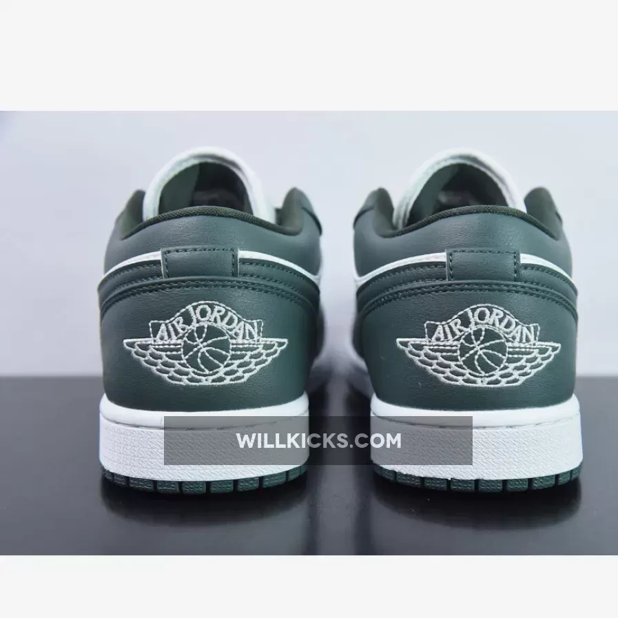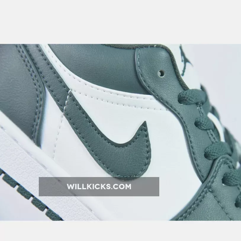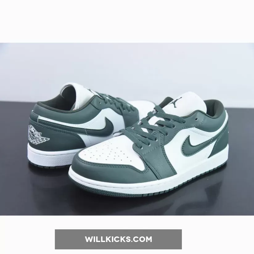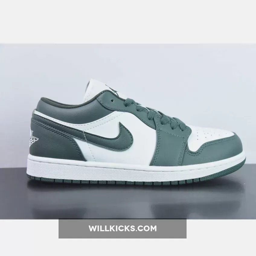this Air Jordan 1 Low colorway features a full leather construction on the upper with white serving as the base hue along with olive detailing seen on the overlays, laces, Swooshes, and inner liner. The embroidered Jumpman logos on the oversized white tongues and the mesh insoles all follow suit. Fresh white additionally follows onto the midsole, laces, and Wings insignia on the heel.A white rubber midsole and an olive outsole are featured underneath to complete the new design.