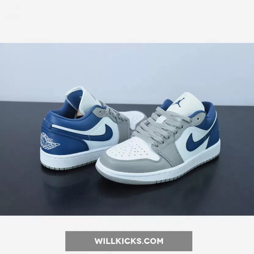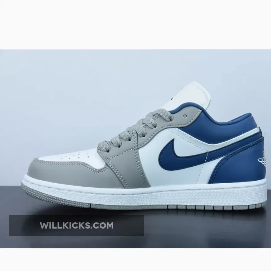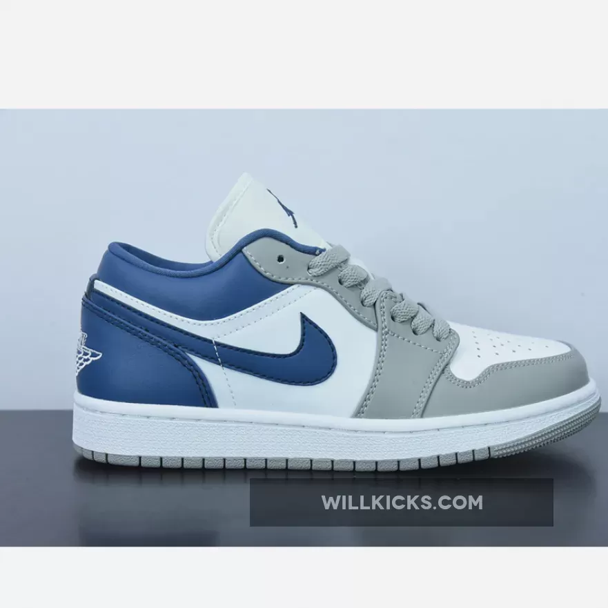 Unarguably the piece to wear for breezy casual days, the Air Jordan 1 Low White Grey Blue is designed to put a stylish spin on your everyday ensembles. This pair’s simple upper — featuring a smooth white leather base, supple grey forefoot overlays and cobalt blue accents at the back — exudes effortless elegance. As an easy-to-style sneaker, you can match it with any summer ensemble.