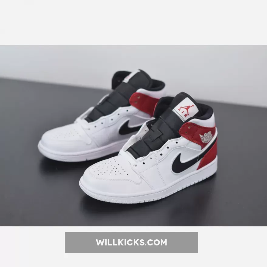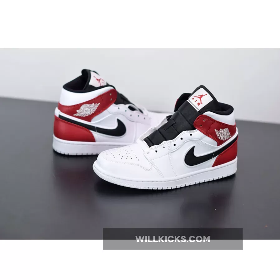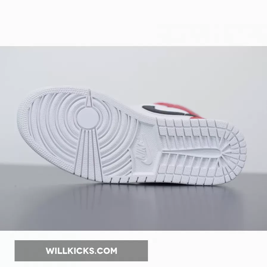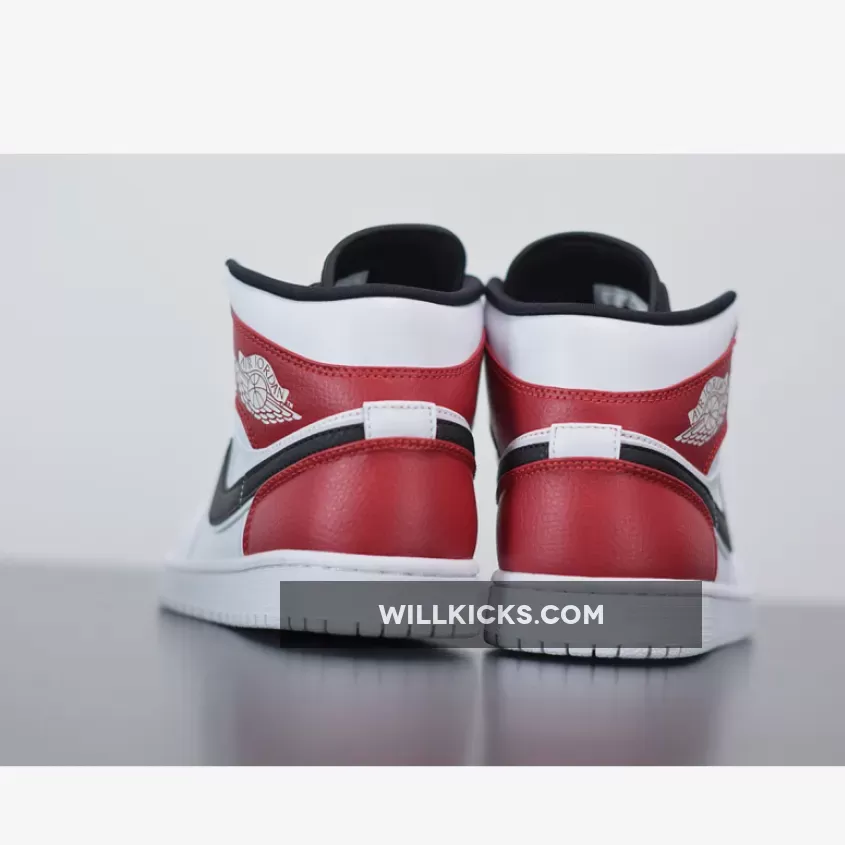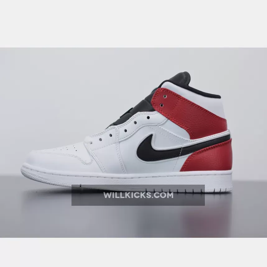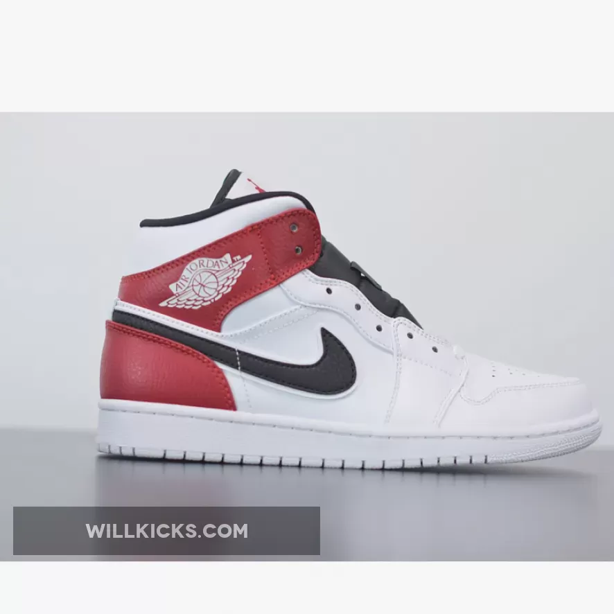 Clean AF! 🔥 White leather upper pairs perfectly with bold red accents on the ankle & heel 🔥 Air-infused midsole offers insane comfort 👟 Perfect summer kicks! #AirJordan1MidChicago 🤩