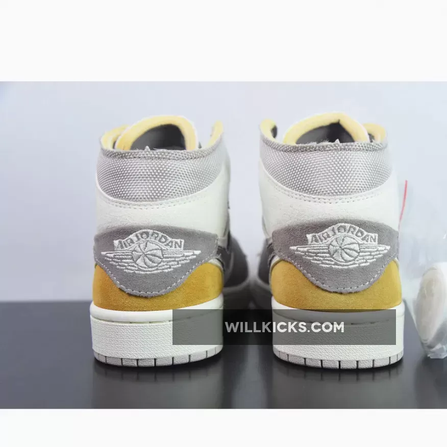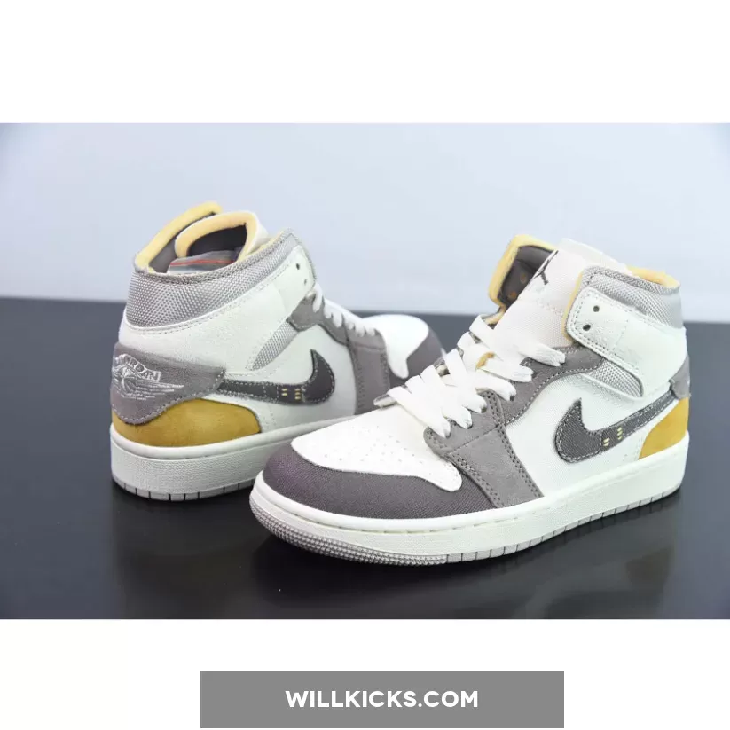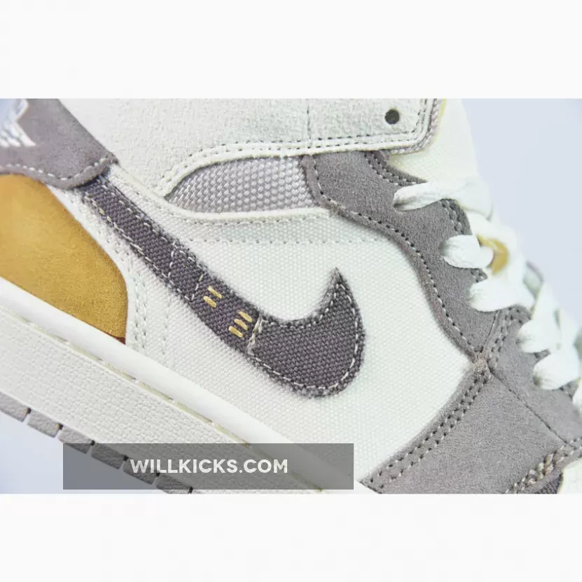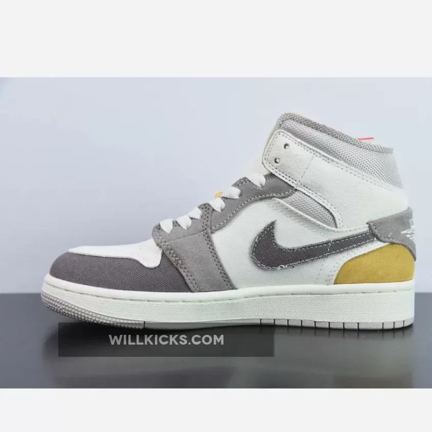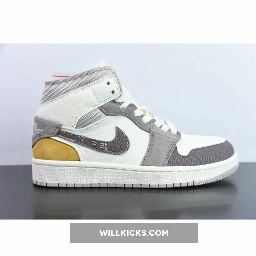 One of the most unique colorways to hit Michael Jordan’s mid-top flagship, this Air Jordan 1 Mid features sail suede across the sidewalls and toebox, while the ankle and front are dressed in a taupe haze woven canvas. The collar flaps are dipped in a clean muslin hue, and a dash of celestial gold adorns the heel for a pop of contrast that’s sure to turn heads. Color-matched along its rough cut Swoosh, the back tab is flipped downwards covering a sliver of the vibrant tan suede heel counter. Rending a stitched-on ensemble at its vamp and midfoot panel, ever so light creams envelop the base in tandem with its canvas tongue and laces for a lightened appreciation complimenting the tonal scheme.