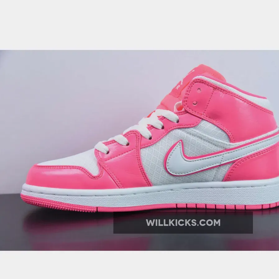 The Jordan 1 Mid Hyper w Pink White (GS) was released in 2019 and comes in grade-school sizes.