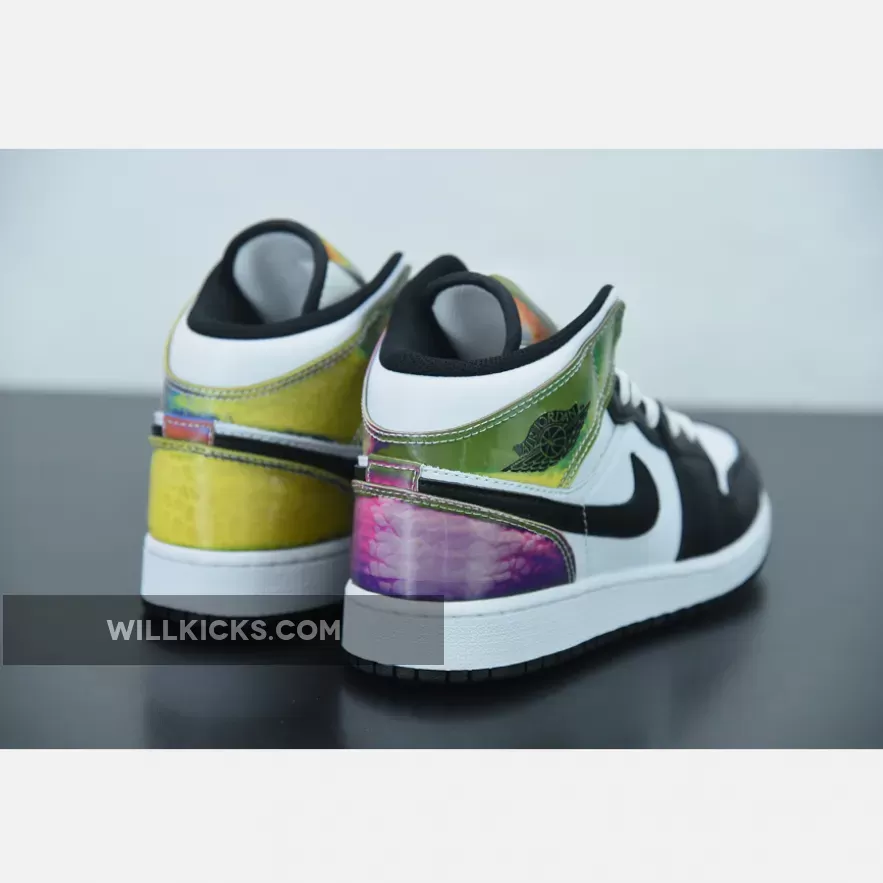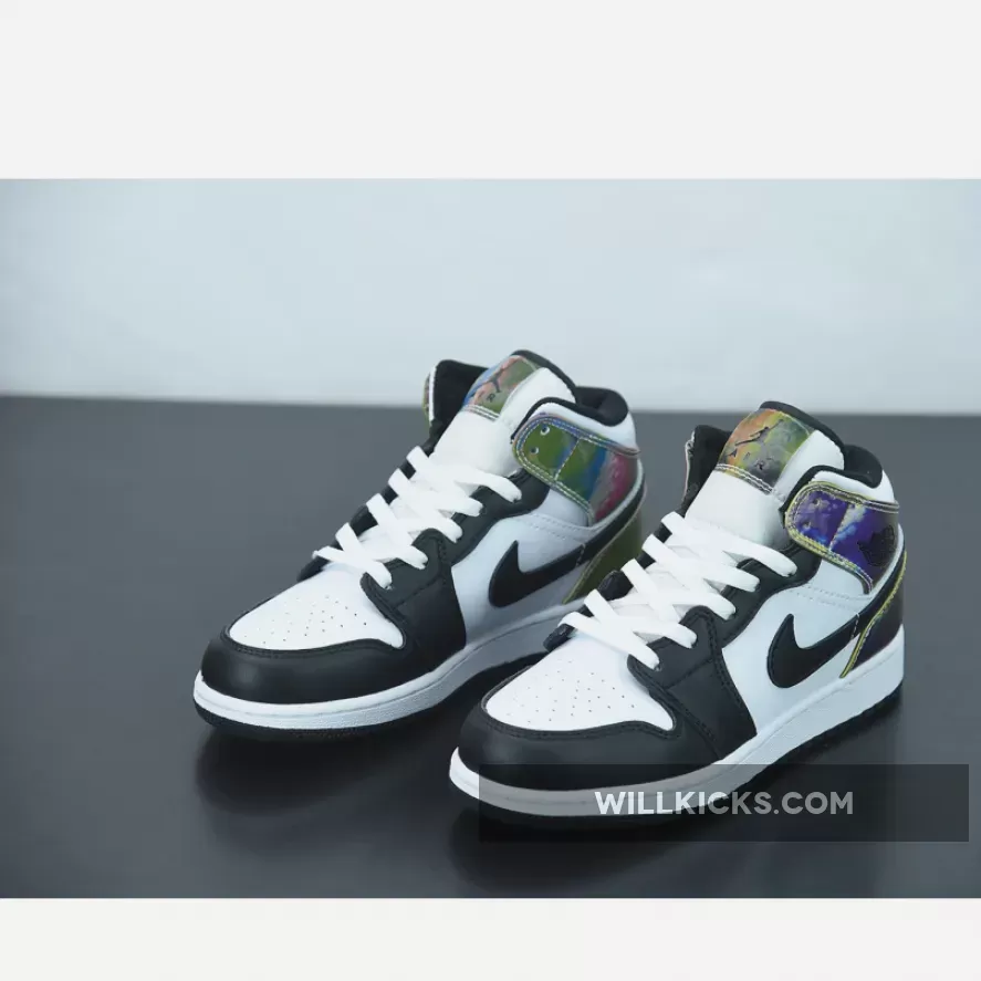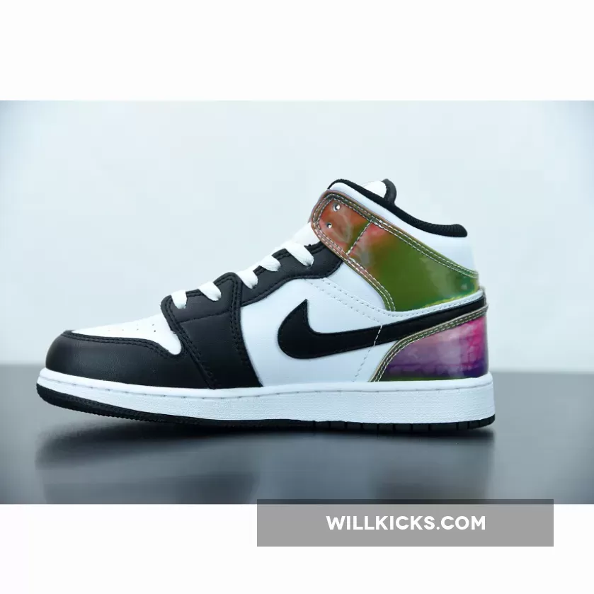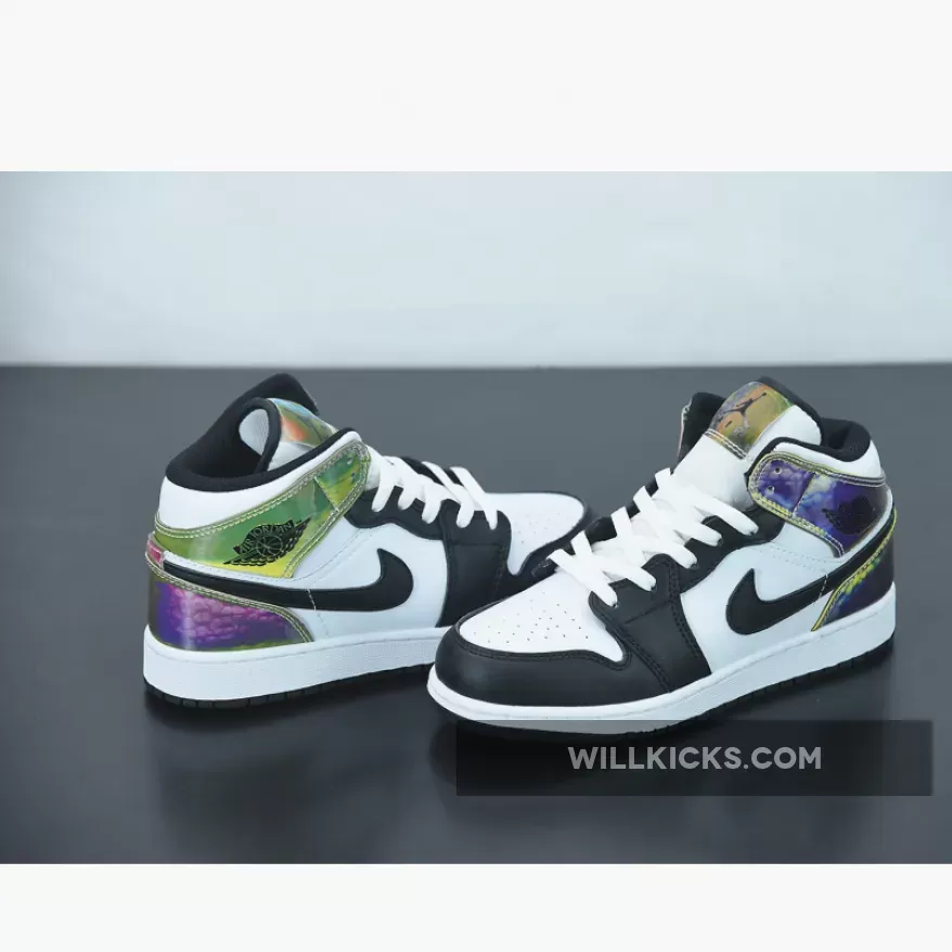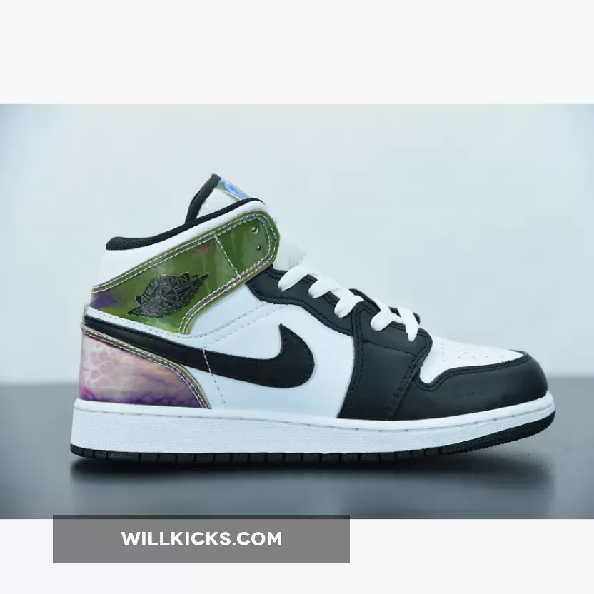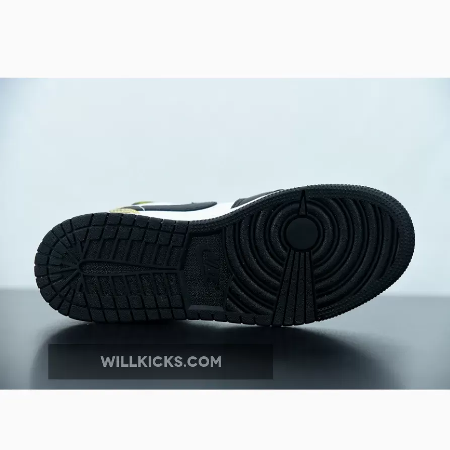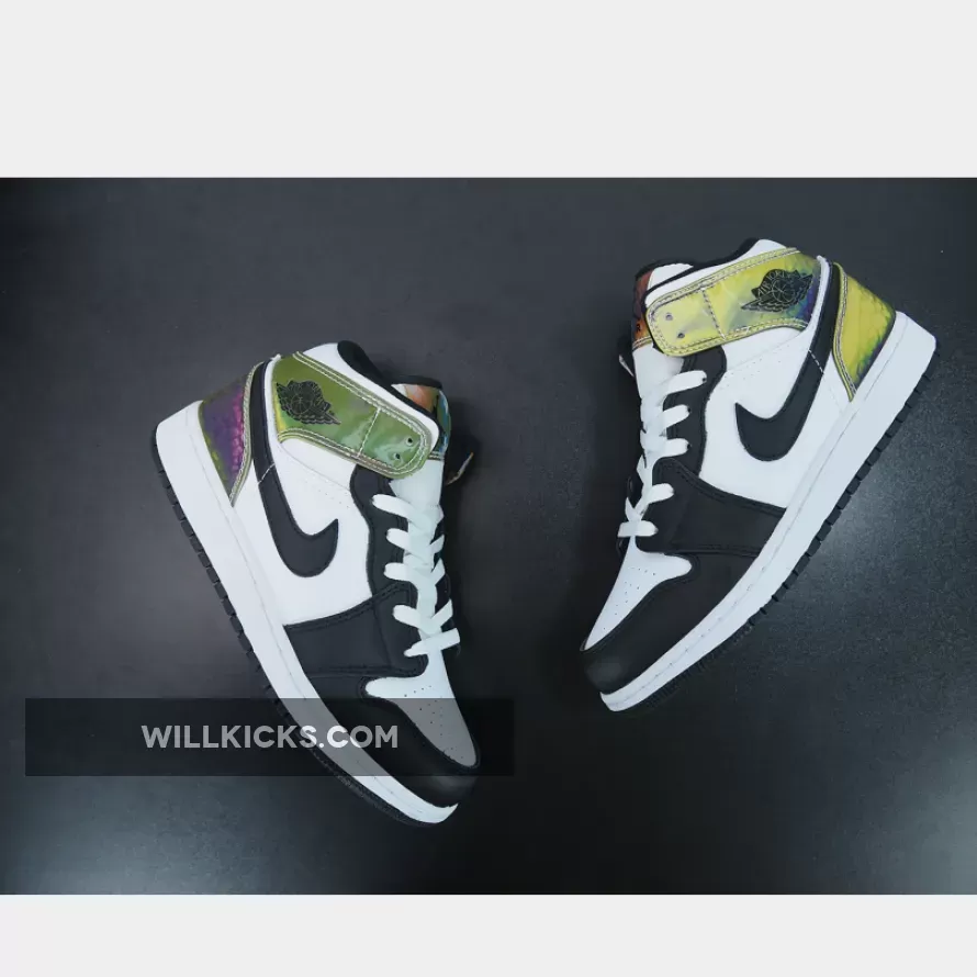 this mid-top Air Jordan 1 comes highlighted with the classic ‘Black Toe’ theme while featuring White leather on the upper, and Black adorns the overlays, Swoosh logos, and rubber outsole. Sticking out the most, we have heat-sensitive detailing on the heel, tongue label, and ankle overlay, which changes colors.
