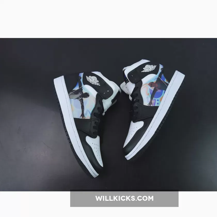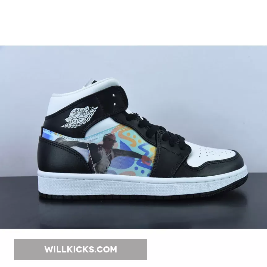 The Air Jordan 1 Mid has been the extra experimental trim of Michael Jordan’s first signature sneaker. The fashion continues with a newly-surfaced, hologram-donning pair for kids. Akin to a previously-seen Air Jordan 1 Low, the upcoming retro indulges in a general black and white shade scheme throughout its Peter Moore-designed body. The colour-blocking resembles that observed on a panda-friendly, authentic pair of the first Air Jordan release.