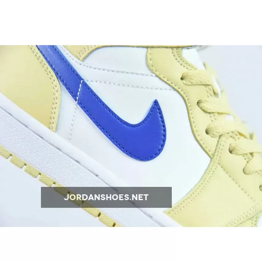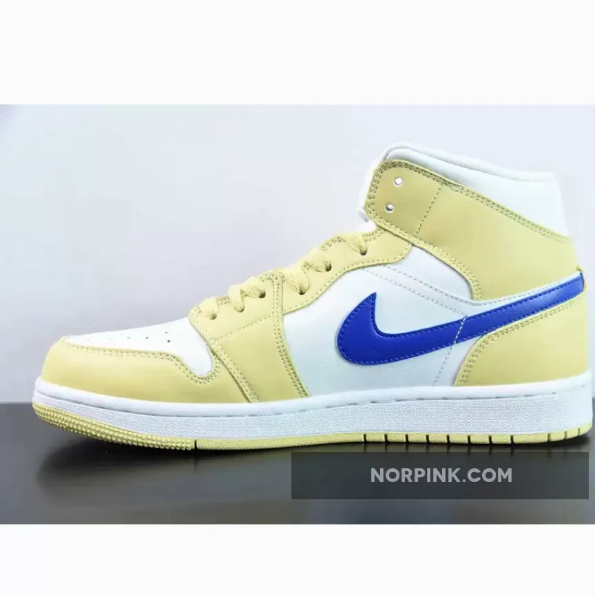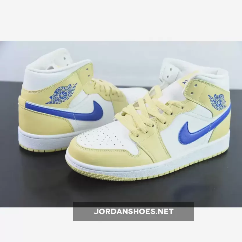 Taking on an official color makeup of Lemon Wash/Lapis-White. This offering of the Air Jordan 1 Mid comes constructed in a full leather build with mesh tongues and lining.