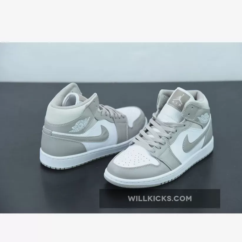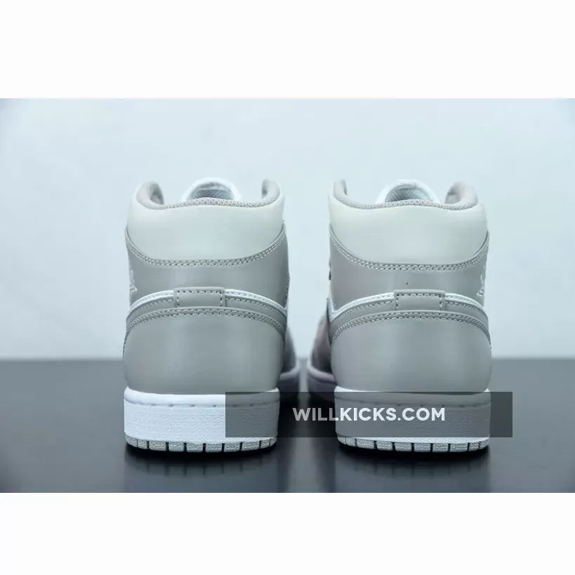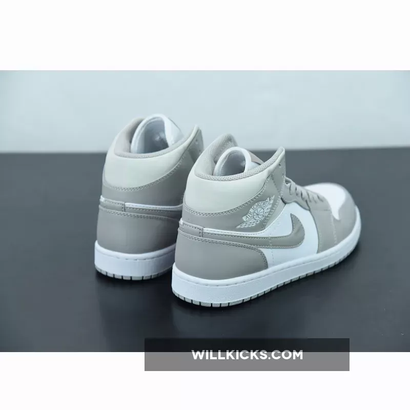 Elegant and pristine are two adjectives that perfectly describe the colourway of Air Jordan 1 Mid Linen White. This two-toned pair starts with a smooth white leather base that dominates the side panels and perforated toe box, while light grey leather overlays in the mudguard, eye stays and ankle collar dress the otherwise colourless upper. Dressing up is definitely made easy with this Air Jordan 1’s adaptable look.