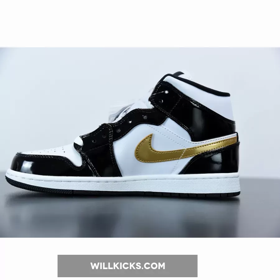 “I’m really happy with my Jordan 1 Mid Patent Black White Gold purchase 👟! Shipping was super quick ⏱️ and I love how unique the design is 🔥. The quality is top-notch 💯 and I’d definitely recommend this shoe to friends 😊”