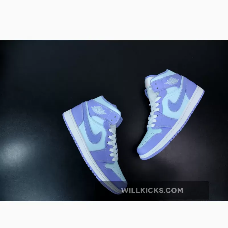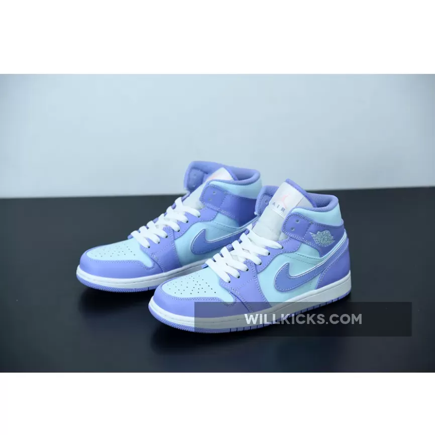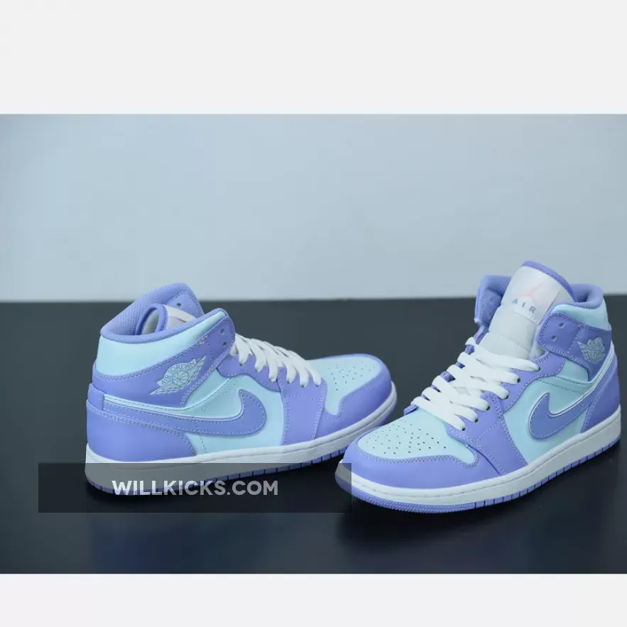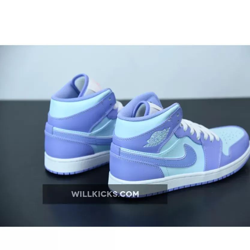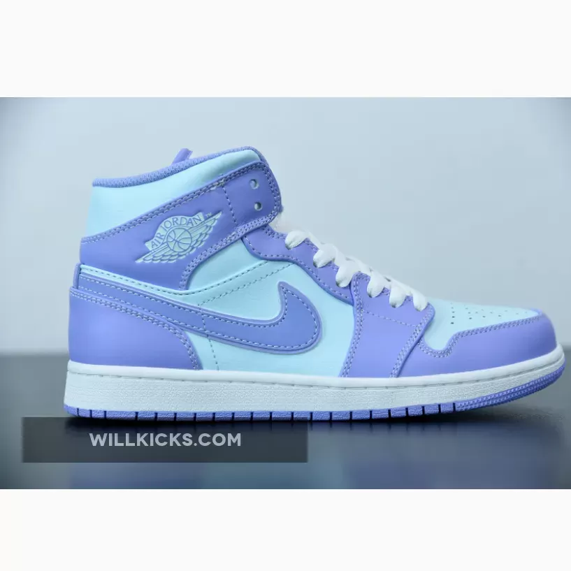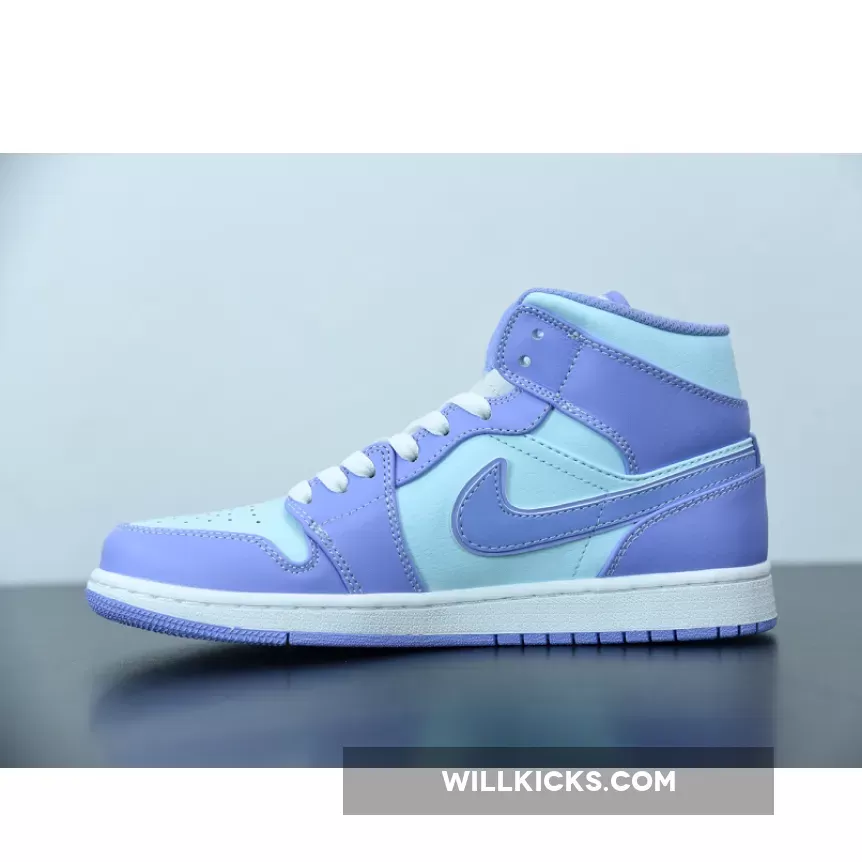 It doesn’t get more pastel than this. The Jordan 1 Mid Purple Aqua Blue is the latest addition to Nike’s AJ1 pastel line up. Dressed in smooth-leather, lilac overlays that match the purple outsole, this is one sickly-sweet Jordan that will be the perfect addition to any colour-loving sneakerhead out there.Aqua blue adorns the upper on this J1, contrasting subtly to the purple hues found on the toe cap, around the lace unit, heel, ankle panels and iconic Nike Swooshes on both medial and lateral sidewalls. A metallic-looking, creamy lace unit ties up this Air Jordan 1 from the perforated toe box to its cushioned ankle collar, with Nike branding found at the top of the tongue. Additional branding found in the form of Michael Jordan’s customary Wings insignia its in blue in the usual place on the ankle flaps.