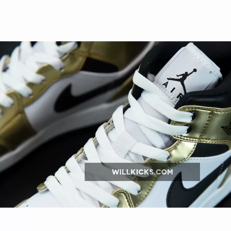 The Jordan 1 Mid SE Metallic Gold is a fresh new mid-top version of the legendary Air Jordan 1 model that first launched to the masses all the way back in 1985. Designed by Peter Moore, the AJ1 was Michael Jordan’s first ever signature sneaker, and launched in low, mid and high-top renditions. The Air Jordan 1 remains one of the most popular sneakers ever even today.Crafted from shiny patent leather, the AJ1 showcases a neatly panelled upper that’s decked out in a metallic gold and white colorway. Nike’s signature Swoosh logo runs proudly across the lateral and medial sides, while the wings logo and Jumpman logo are present at the collar and tongue respectively. Whether you’re a seasoned Jordan collector or just getting into the brand, there’s no denying that these are worthy of a place in your collection.