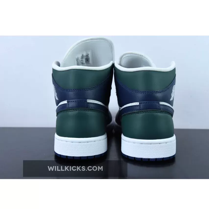 Reminiscent of the NFL’s Seattle Seahawks team uniforms, the Air Jordan 1 Mid is outfitted in smooth leather uppers, as deep green runs through the mudguards, lacing systems, collars and heel counters.