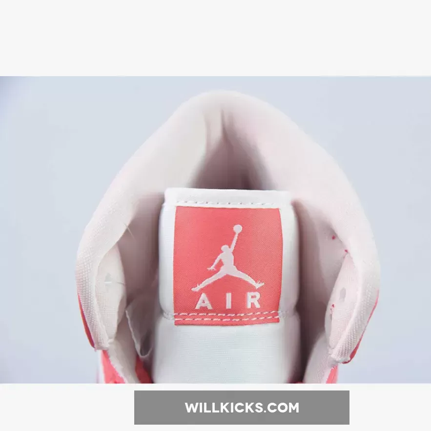 This mid-cut AJ1 has an all-smooth-leather upper with pure white as the base and a candy pink colour on the toe cap, the mudguard, the eyestay panel, the collar flaps, the signature profile Swooshes on both sides of the shoe and the heel counter.