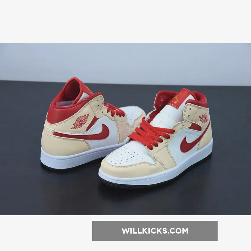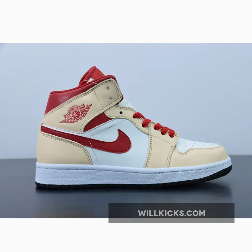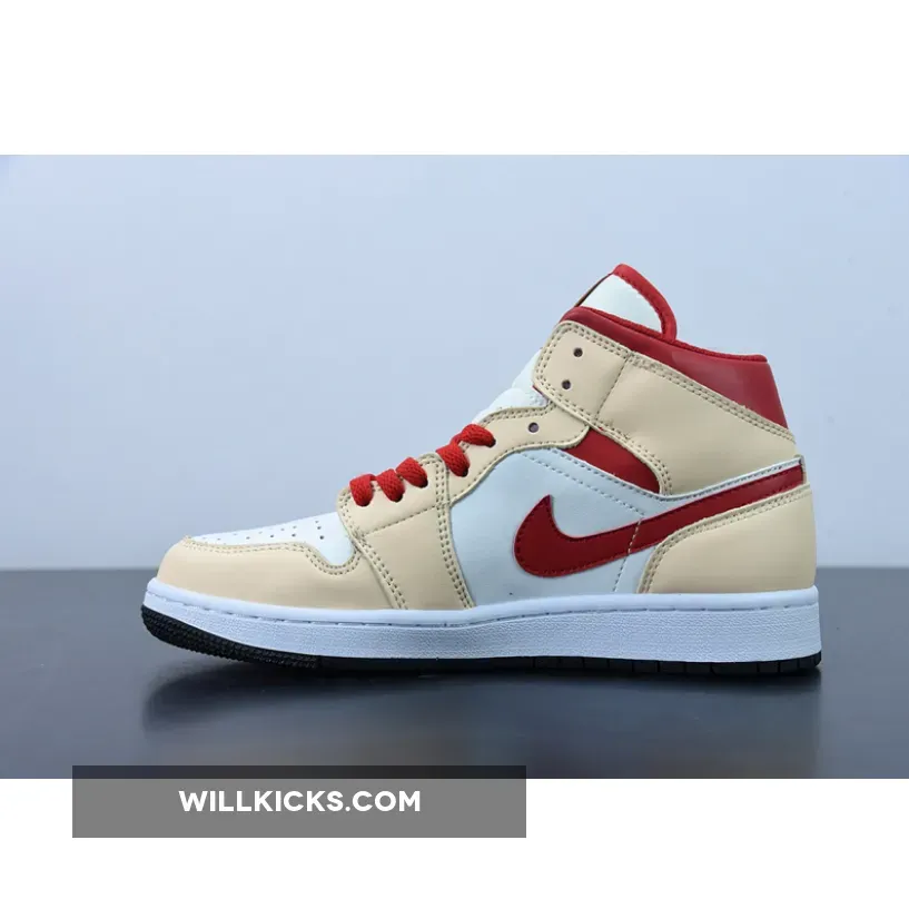 The Air Jordan 1 Mid Beige Red (GS) for grade schoolers was released in April 2022 and retailed for $100.