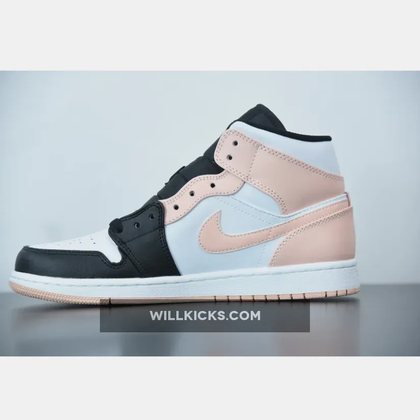 Pretty ?. Air Jordan 1 Mid White/Black-Crimson Tint. Excellent quality, comfy & stylish. Fast shipping ✈️! #AJ1 #Sneakers #Nike ?.
