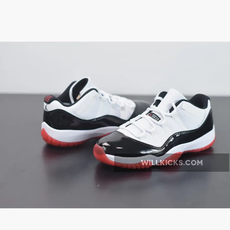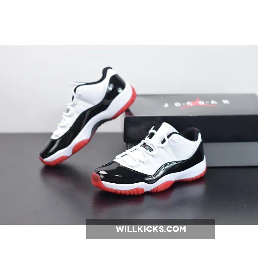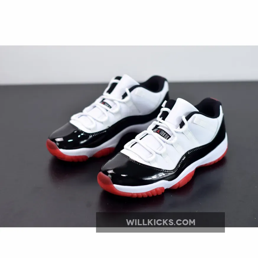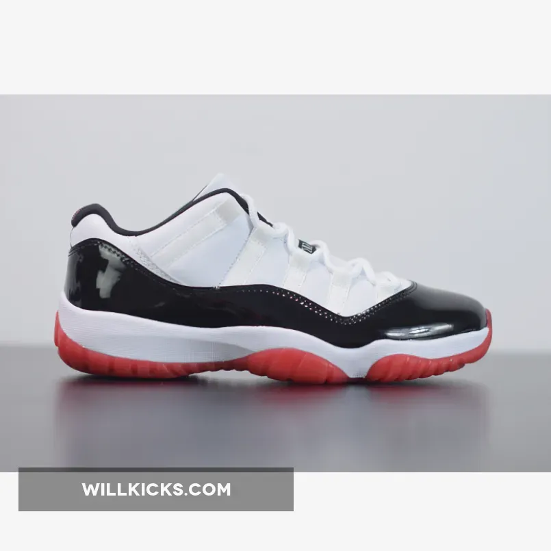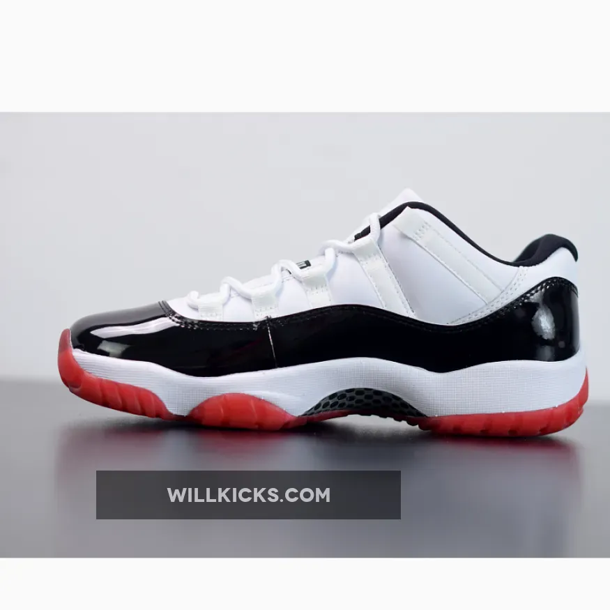 The Jordan 11 Low Concord Bred combines two of the most legendary Jordan Brand colourways for a reimagined classic look. The Jordan 11 was first introduced in 1995, and is known to be MJ’s personal favourite shoe from the many signature models that have been released under his name. Combining the highly-coveted Bred colourway with the stripped back Concord rendition, this pair displays a familiar look with streamlined designs. The uppers are crafted from a blend of patent leather, mesh and synthetics. Branding is kept to a minimum, with a small embroidered Jumpman logo at the heel and a typeface logo across the tongue.