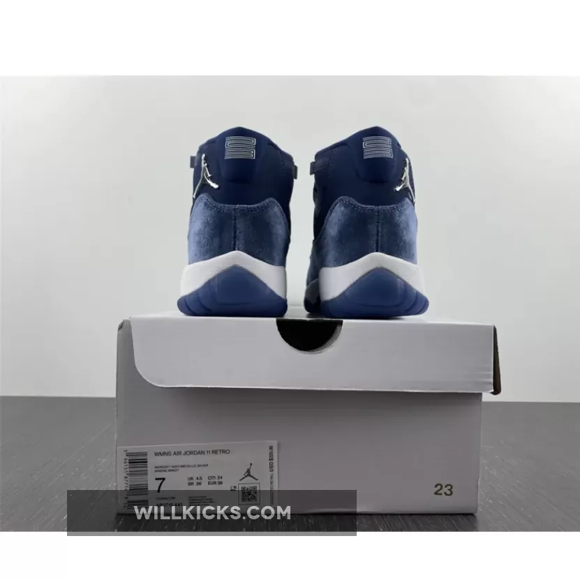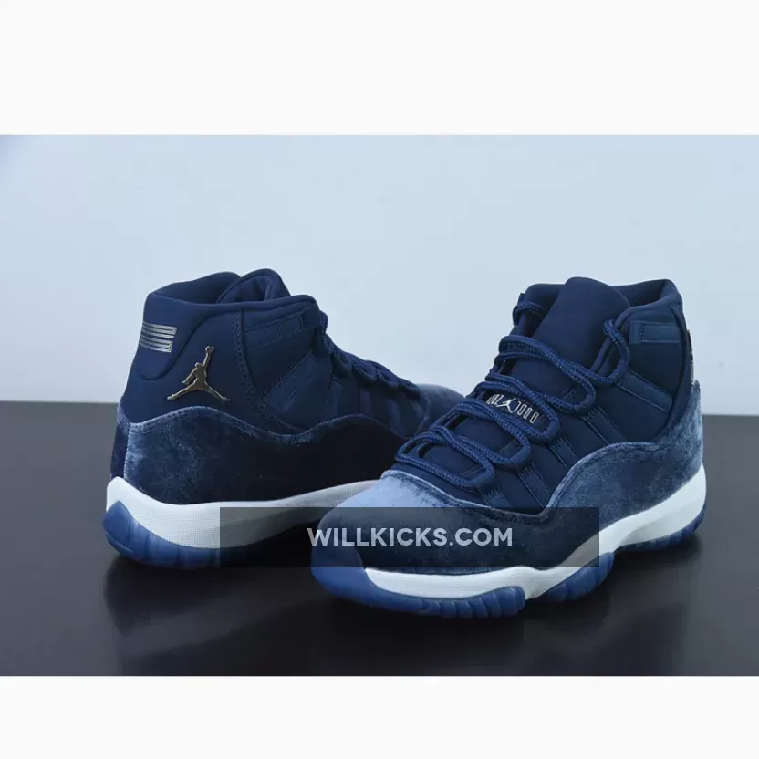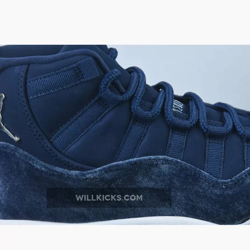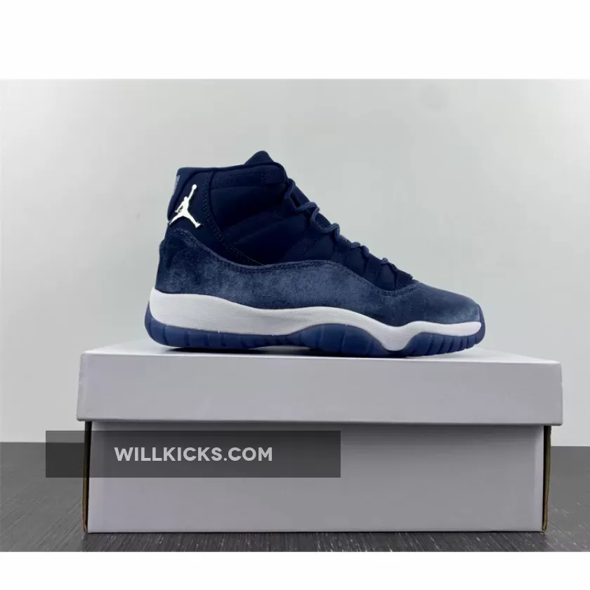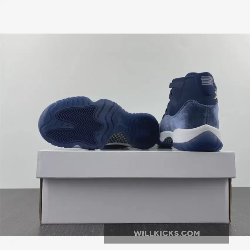 Solid colorway on the Air Jordan 11 Velvet Midnight Navy. Premium materials and comfy. Good shipping, arrived just in time. Recommend!